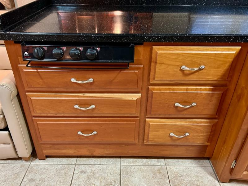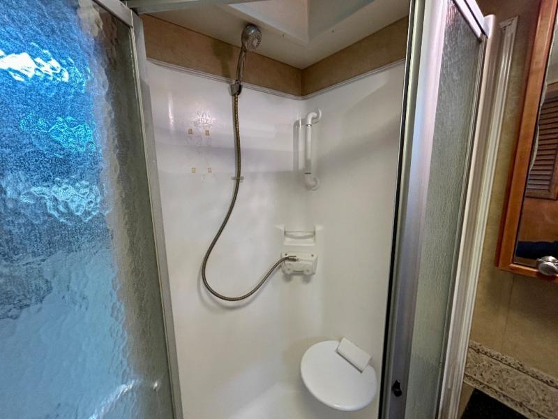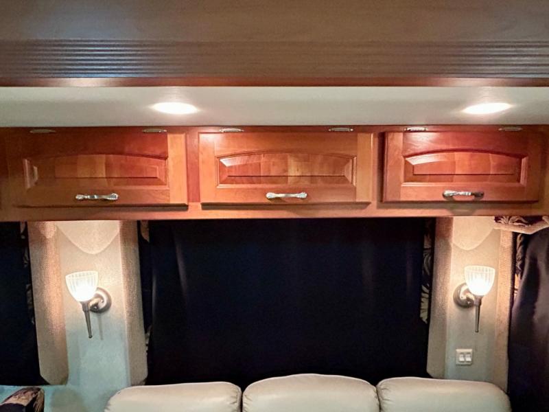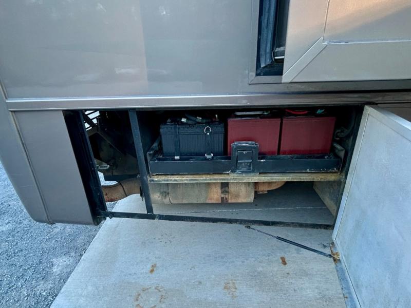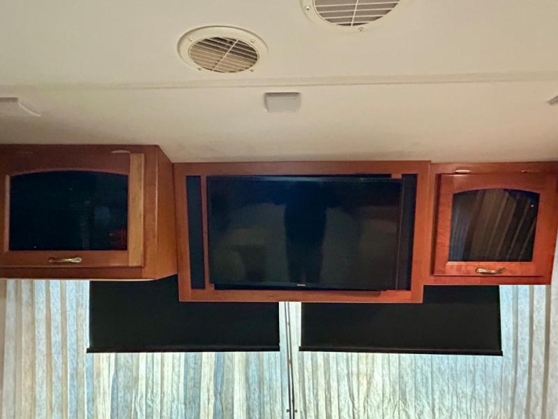 Quad Slide, Rear Queen Bed, Ward. w/Sliding Mirrored Doors, Wash/Dryer or 2nd Ward., TV w/Storage Below, Dresser, Angle Shower, Lav., Stool Room w/Lav., Refrig., Pantry, Dinette w/Chairs, 2 Sofas, 3 Burner Range, Double Kitchen Sink, TV Above Cab Area and Much More.