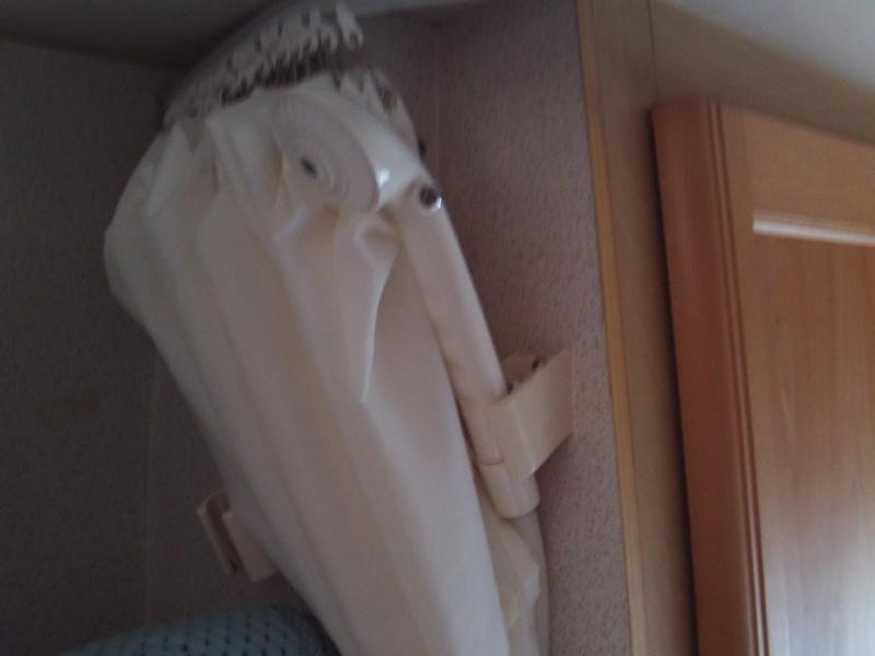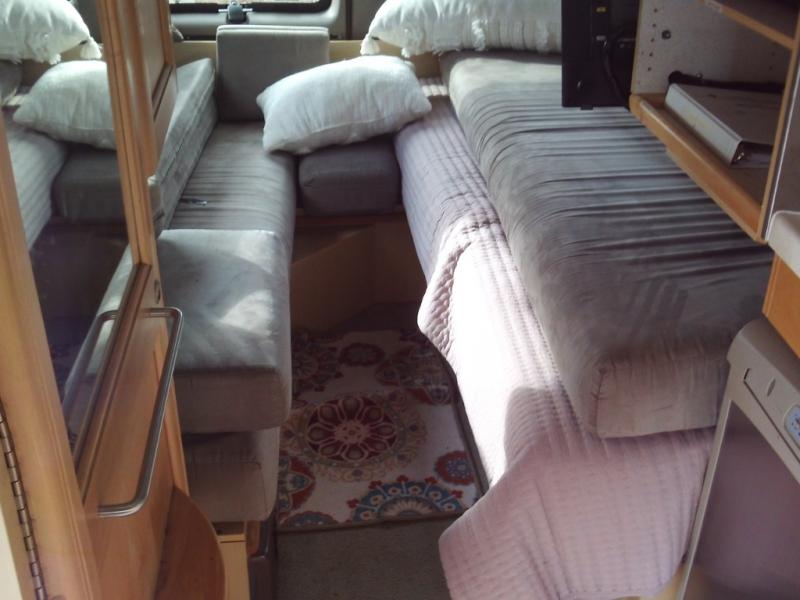 Rear Dinette coverts to King size bed or 2 twin w/table in middle, Sleeps 3, Full-length Wardrobe, Lots of storage, TV/DVD/VCR, Toilet, Privacy Door, and Shower.