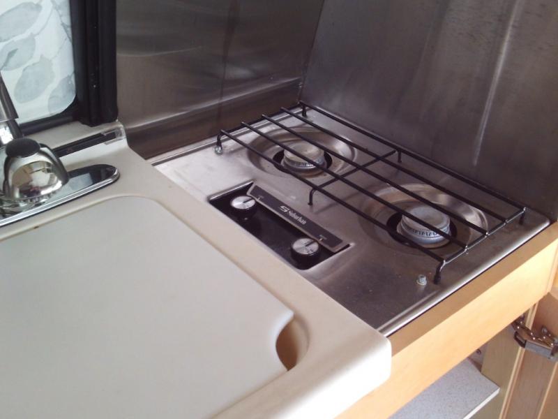 Equipped with 3-way refrigerator, Onan generator with 243.7 hours, Cool Cat heat pump/air conditioner, microwave, 2 burner range, 16k btu furnace, 6 gallon DSI LP gas water heater, SunShade window screens, TV antenna, digital tv, Fantastic vent fan, Max Air cover and more including the kitchen sink.