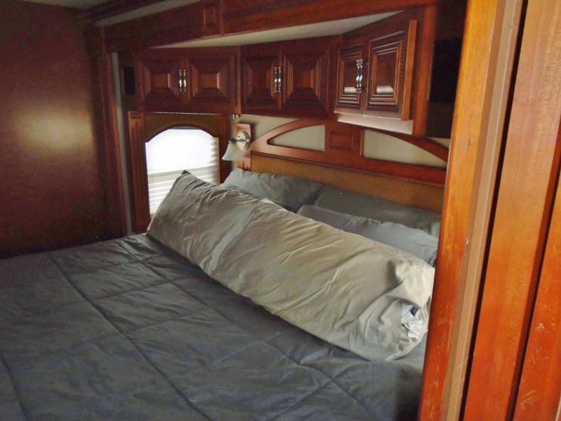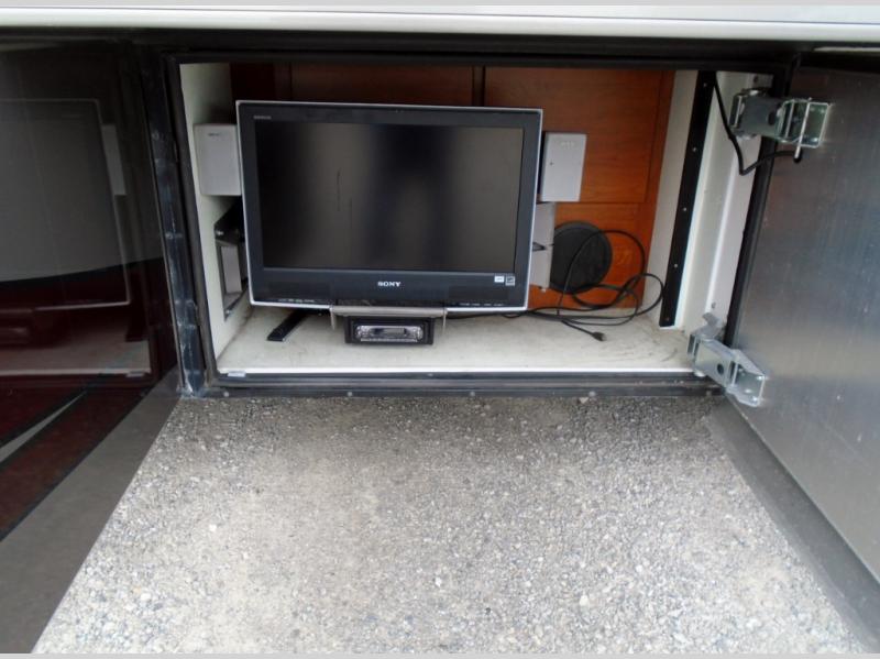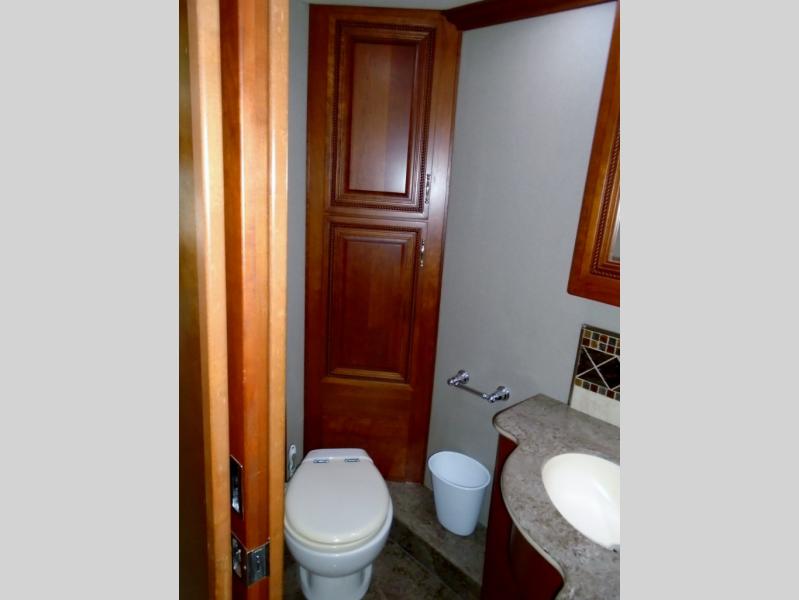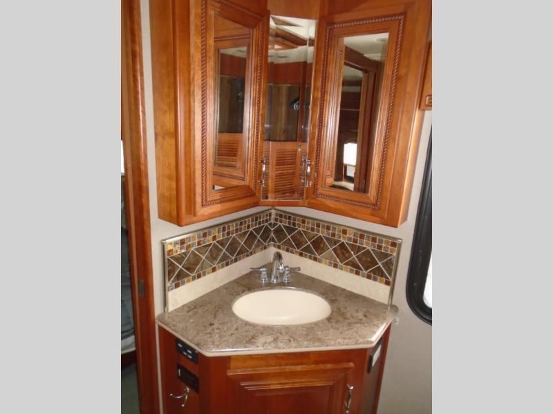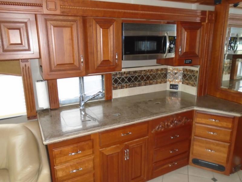 Triple Slide American Eagle Motor Home w/Rear Bath & Full Driver Side Slideout, Shower w/Seat, Washer/Dryer, Lav., Med. Cabinet, Ward., Queen or Opt. King Slide w/Nightstands, 26" Flat Screen TV/Linen Cabinet/4-Door Refrig./Dining Table & Chairs w/Base Cabinet & Sofa w/Air Mattress Slideout, 32" Flat Screen Above Cab Area, Leather Sofa Bed/Double Kitchen Sink & 2 Burner Range w/Micro. Slideout, Throw Rugs Available w/Full Tile Opt., 1/2 Bath, Pantry,