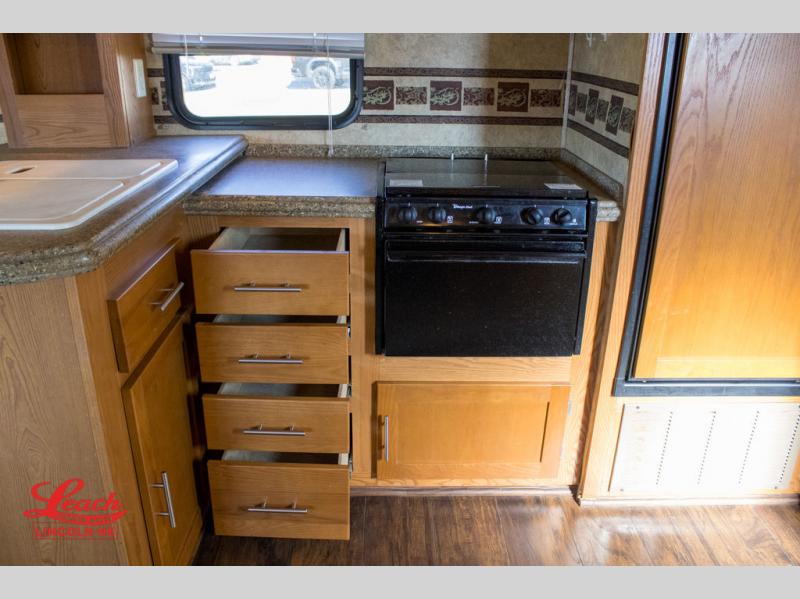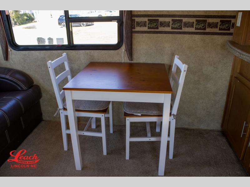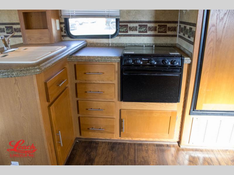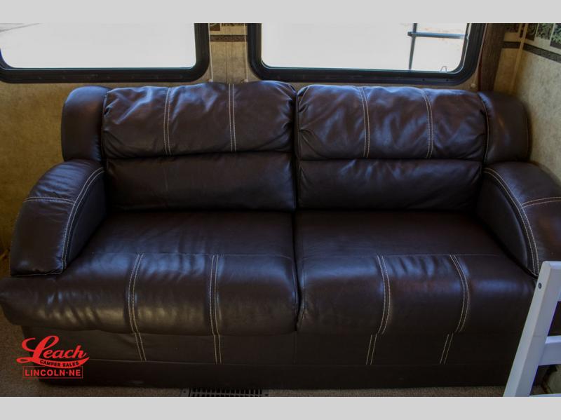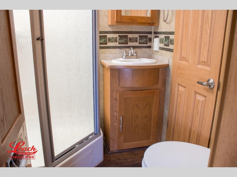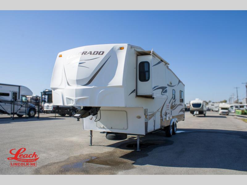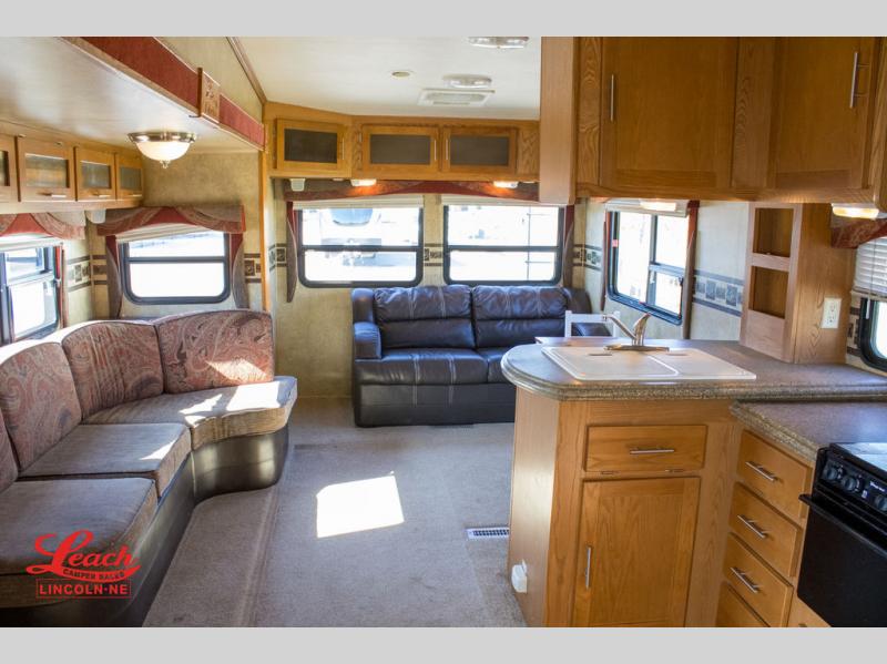 Double Slide Colorado Fifth Wheel w/Rear Living Area Including Sectional Sofa w/Overhead Cabinets, Slideout Sofa/Dinette w/Table & Ent. Center, 2 Bar Stools, Double Kitchen Sink, 3 Burner Range, Refrigerator, Ceiling Fan, Side Aisle Bath w/Corner Shower, Lav., Linen Cabinet, Double Bath Entrance, Front Queen Bed w/Nightstands Slide, Wardrobe, TV Cabinet, Dresser and Much More.