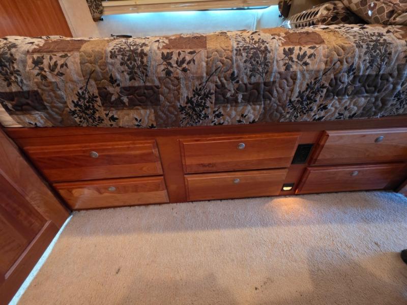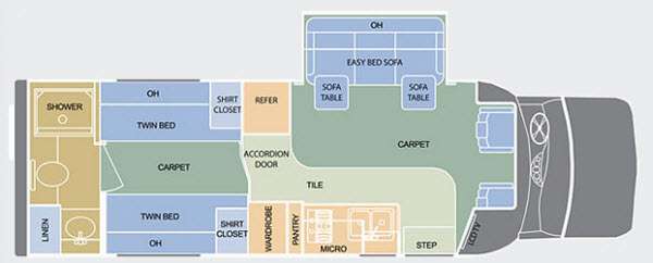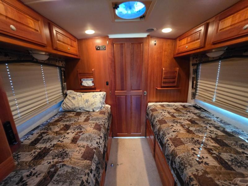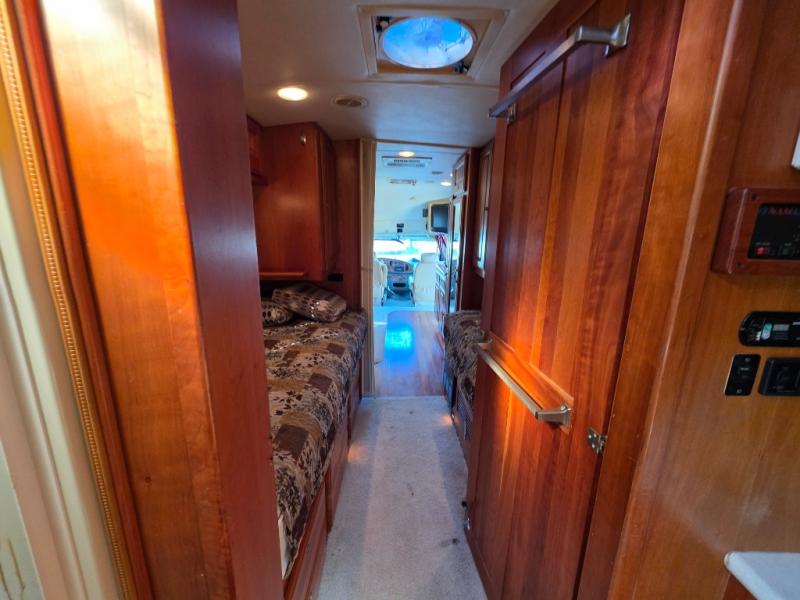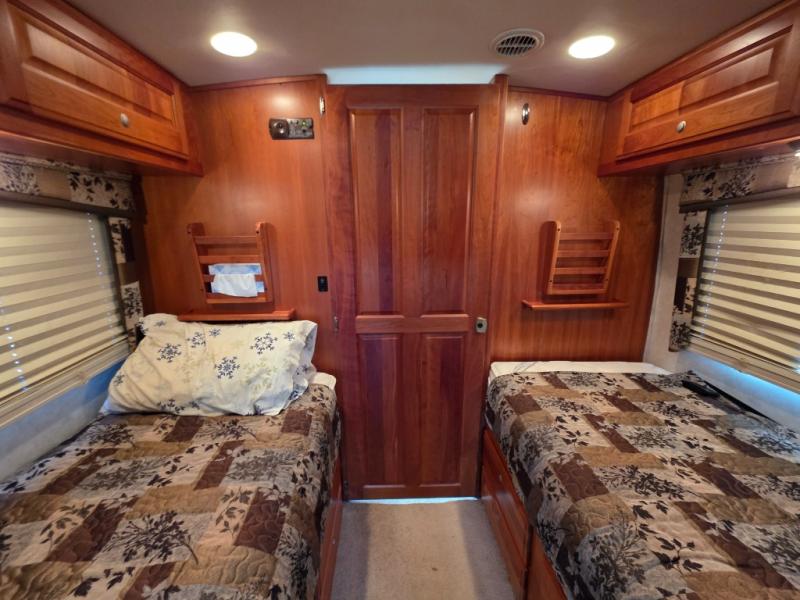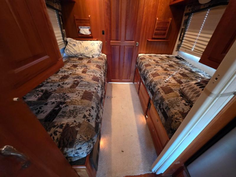 Proceeding down the hall you will come to two twin beds, one on either side of the motor home. At the foot of each bed there is a shirt closet.