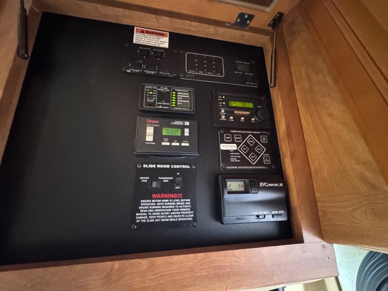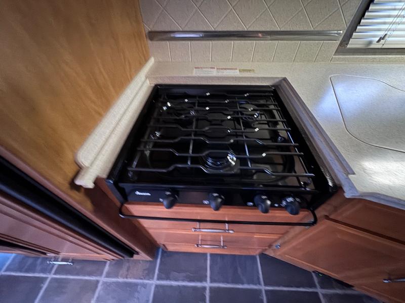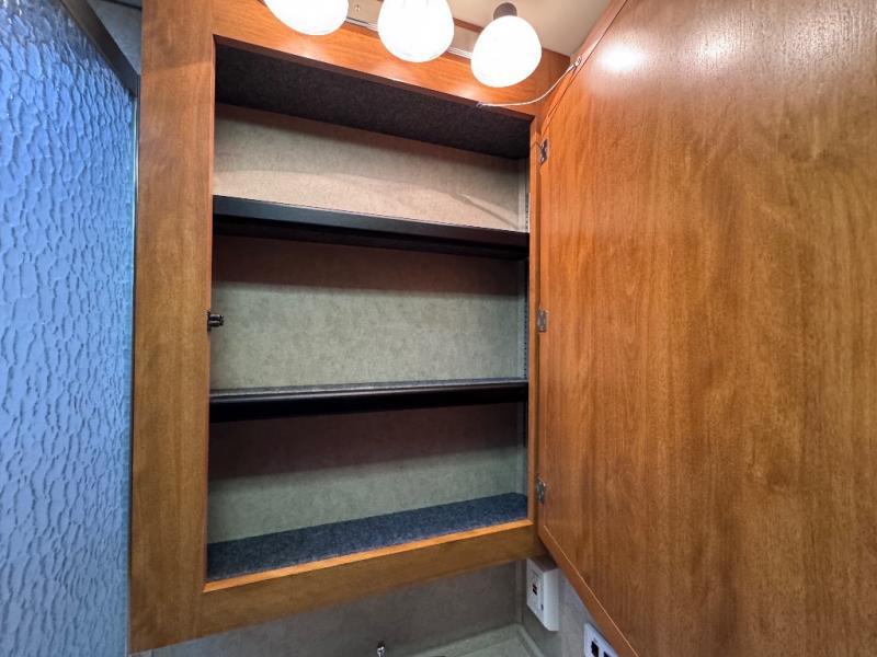 Triple Slide, Rear Queen Bed Slide w/Nightstands & Overhead Cabinet, Dresser, LCD TV, Wardrobe, Side Isle Bath w/Angle Shower, Lav., Utility Cabinet, Med. Cabinet, Sofa Sleeper/Dbl. Kitchen Sink/3 Burner Range & 4 Door Refrig. Slideout, Booth Dinette w/Extension & Chairs & 2 Euro Recliners Slideout, Table Between Recliners, Opt. LCD TV Above Cab Area & More.