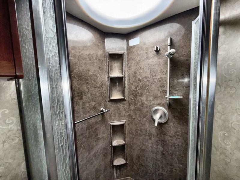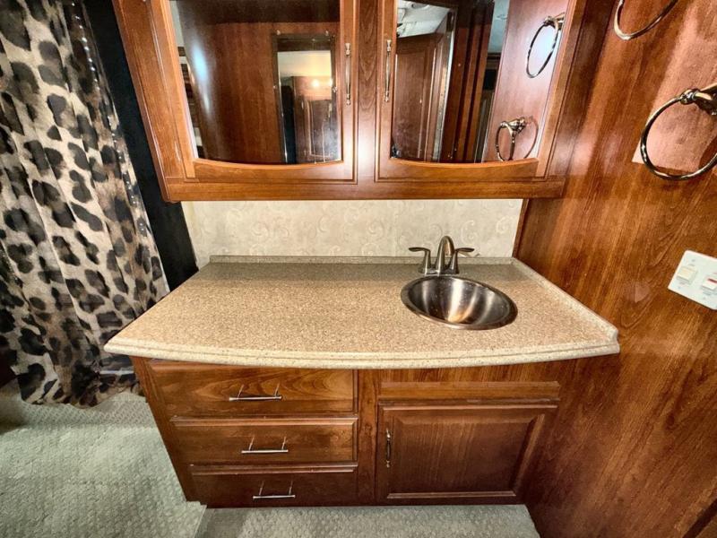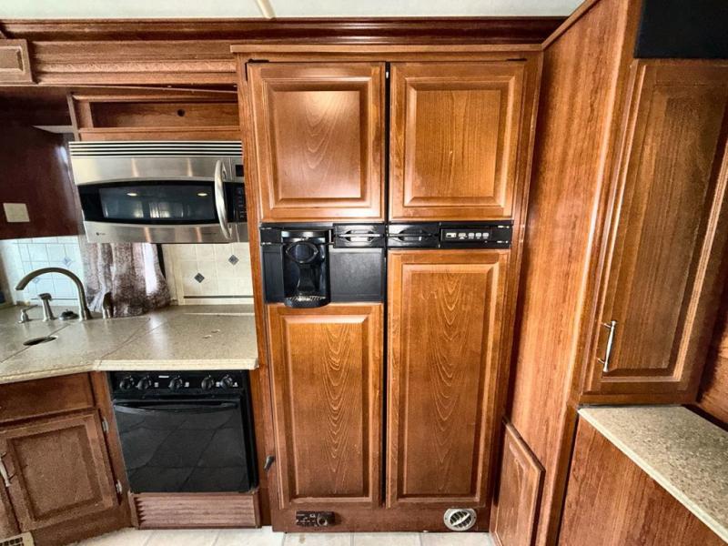 Triple Slide Class A w/Full Wall Slide on Driver's Side, Rear Queen Bed Slideout w/Nightstands, Wardrobe, Opt. Washer/Dryer, 19" LCD TV Above Dresser/Chair/Vanity w/Sink/Booth Dinette w/Extension & 2 Chairs & Sofa Bed Full Slide, TV Above Cab Area, Love Seat/Pull-Out Galley Extension/3 Burner Range/4 Door Refrigerator & Pantry Slideout, Private Shower & Toilet and Much More.