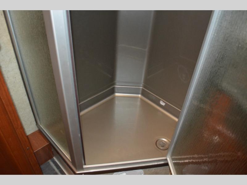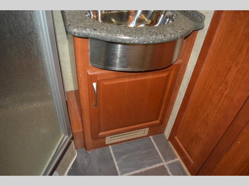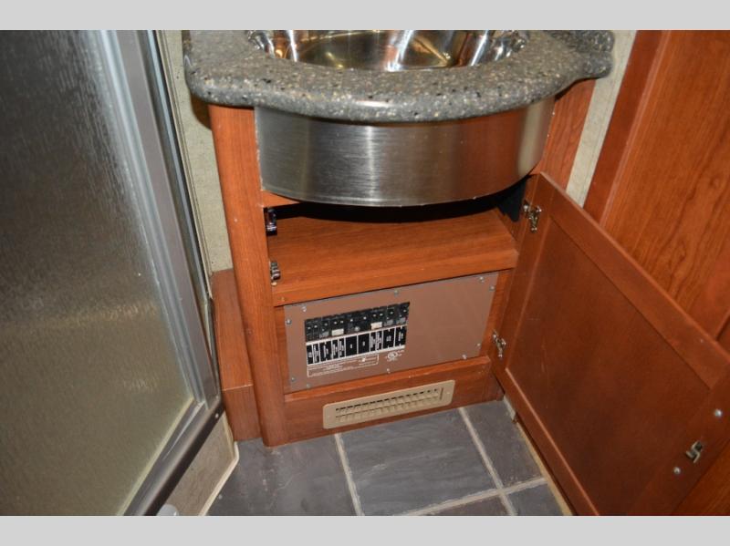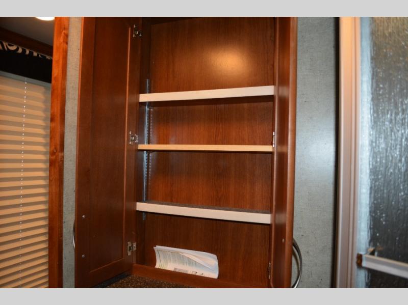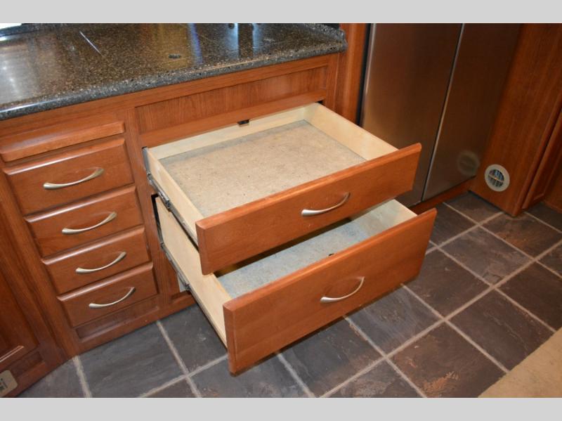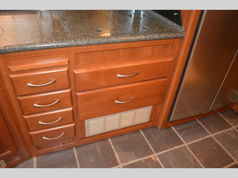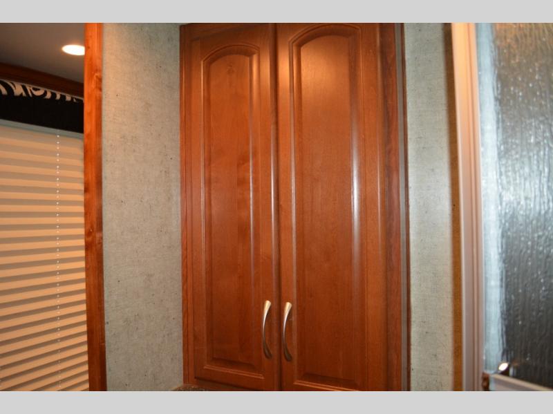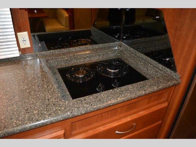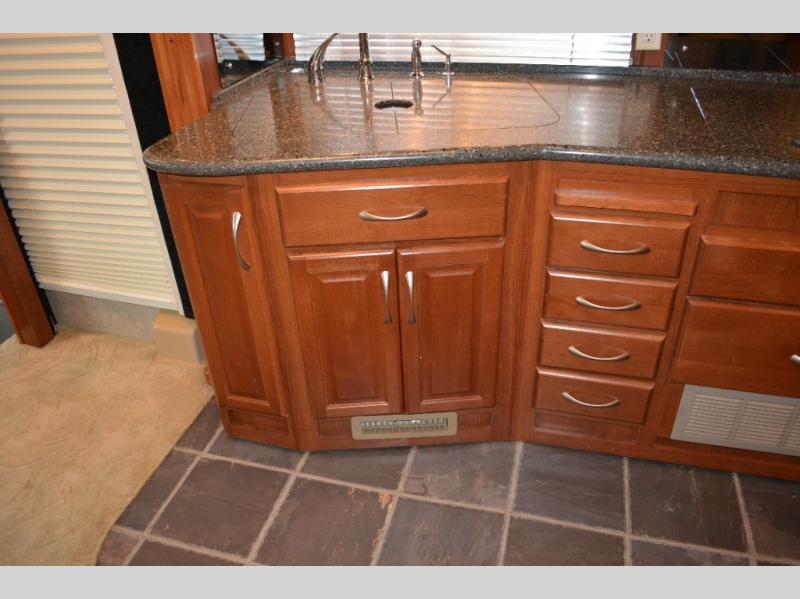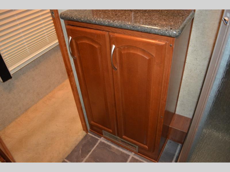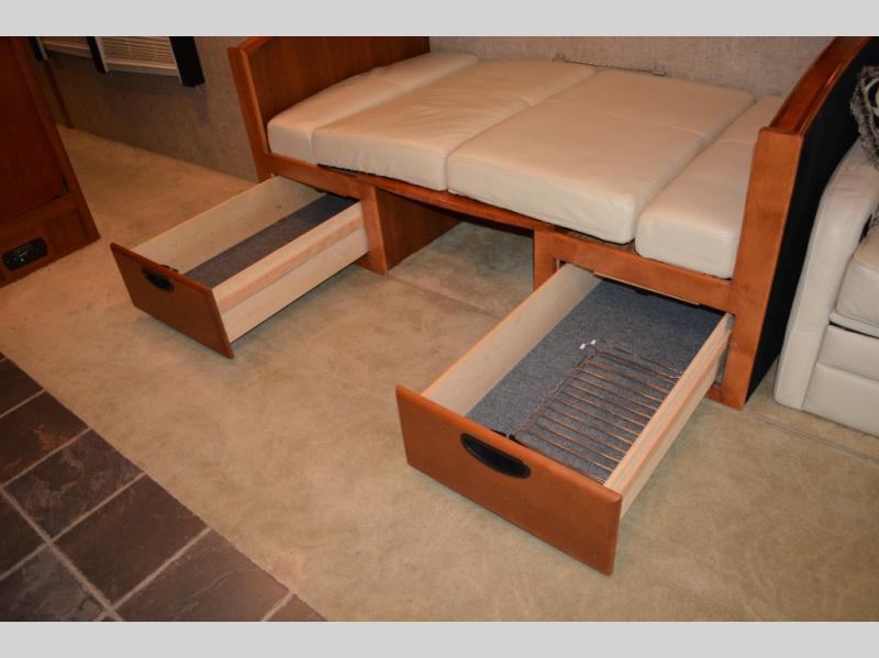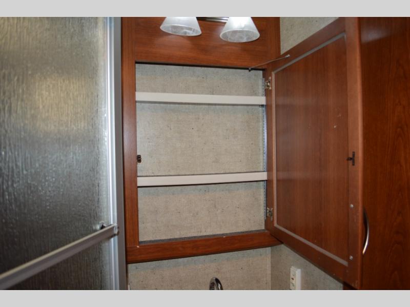 Triple Slide Class A Motorhome w/Rear Bedroom Including a Rear Wardrobe, Storage Cabinet, TV/Desk, Queen Bed Slide w/Nightstands, Side Isle Bath w/Angle Shower, Lav., Double Bath Entrance, Pantry, Utility Cabinet, Refrig./2 Burner Cooktop w/Microwave Above & Double Kitchen Sink Slideout, Recliner, Sofa Bed & Round Dinette w/Chairs Slideout and More. Shown w/Ford Specifications. See us for Workhorse Specs.