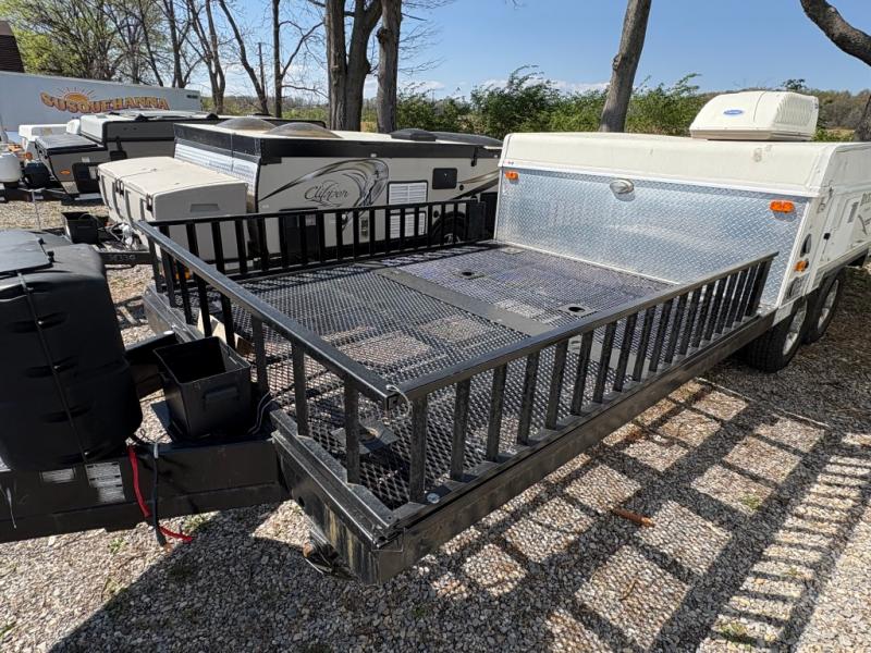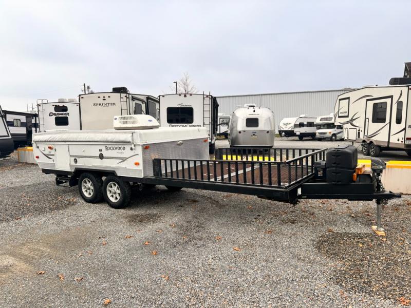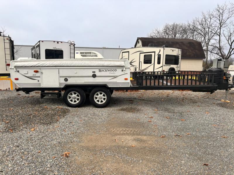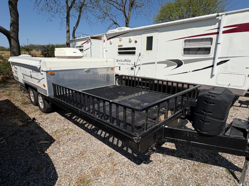 Rockwood Freedom Folding Camper w/96 x 84 Front Deck Storage w/Expanded Metal Decking Plus King Size Tent End Bed in Front. Rear Queen Tent End Bed, Ice Box Opt. Refrigerator, Opt. Heater, Storage Cabinet, Booth Dinette Slide w/Opt. Water Heater, Shower w/Porta-Potty, RVQue Grill and More Storage!