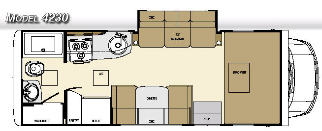 Vista Mini Class C Diesel Motor Home w/Rear Full Bath Including Shower, Lav. & Wardrobe. Pantry, Refrigerator, 3 Burner Range, Sink, Booth Dinette, Overhead Cabinets, Jack-Knife Sofa Slideout w/Overhead Storage, Bunk Over Cab and More.