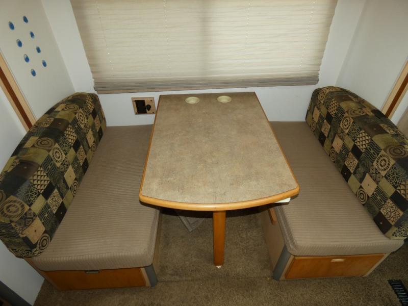 Single Slide, Rear Bath w/Shower, Rear Double Bed, Lav., Refrigerator, Wardrobe, 3 Burner Range, Kitchen Sink, Booth Dinette Slideout, Front Overhead Storage Cabinet, Overhead Cabinets, and Much More!