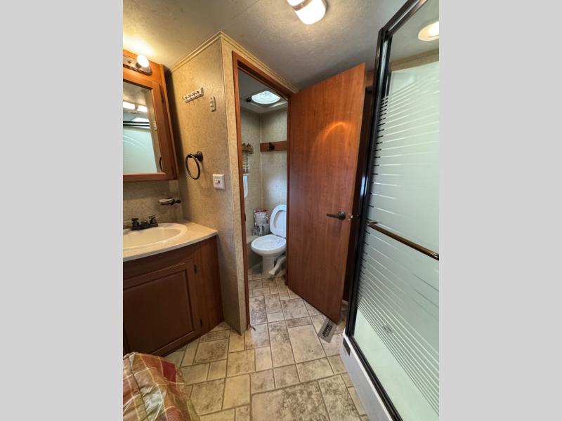 Quad Slide, Rear Living w/2 Recliners & End Table, Slideout Desk/Ent. Center or Opt. Deluxe Entertainment Center Opt., Hide-A-Bed & Free Standing Table & Chairs or Opt. Booth Dinette Slideout, 3 Burner Range & Refrigerator Slideout, L-Shaped Counter w/Double Sink & Overhead Cabinets, Pantry, Garden Tub or Opt. Shower, King Bed Slideout, Chest/Hamper, 16' Awning and Much More.