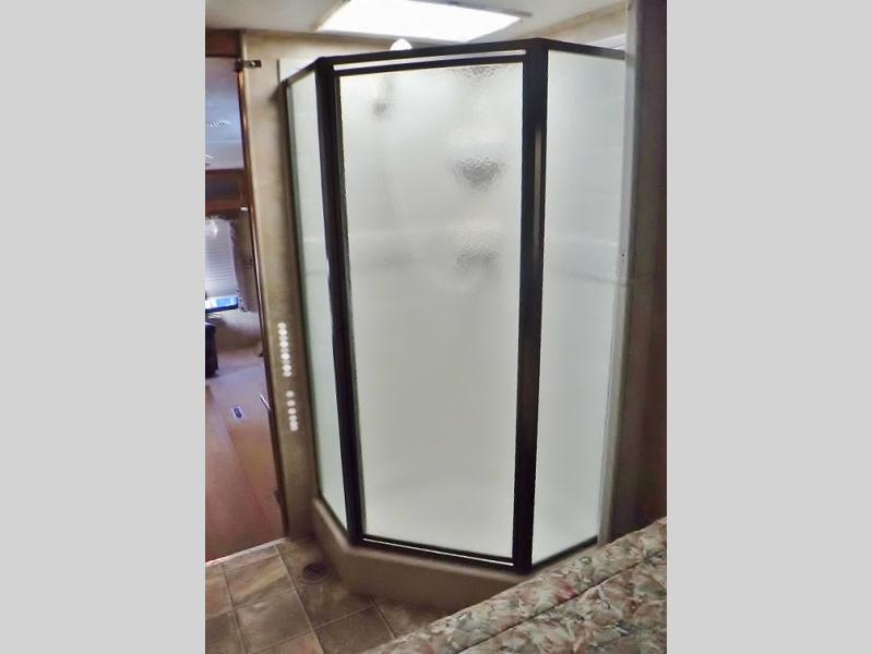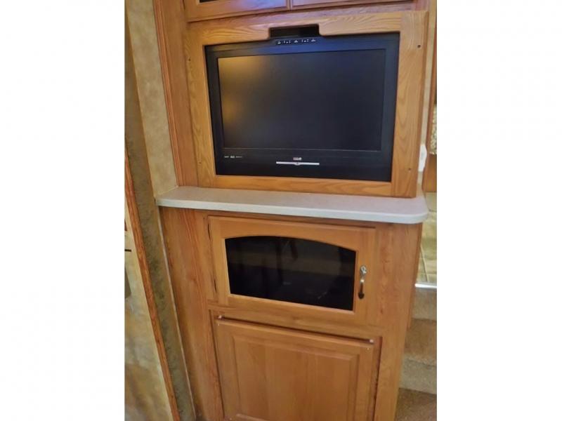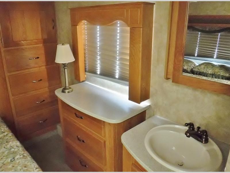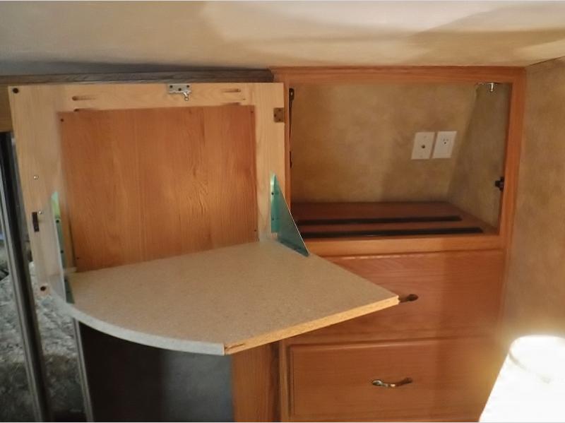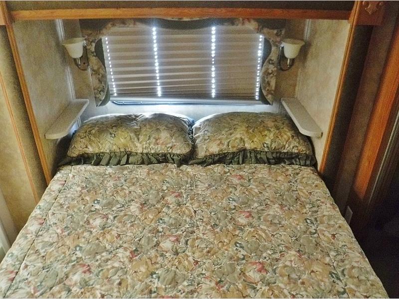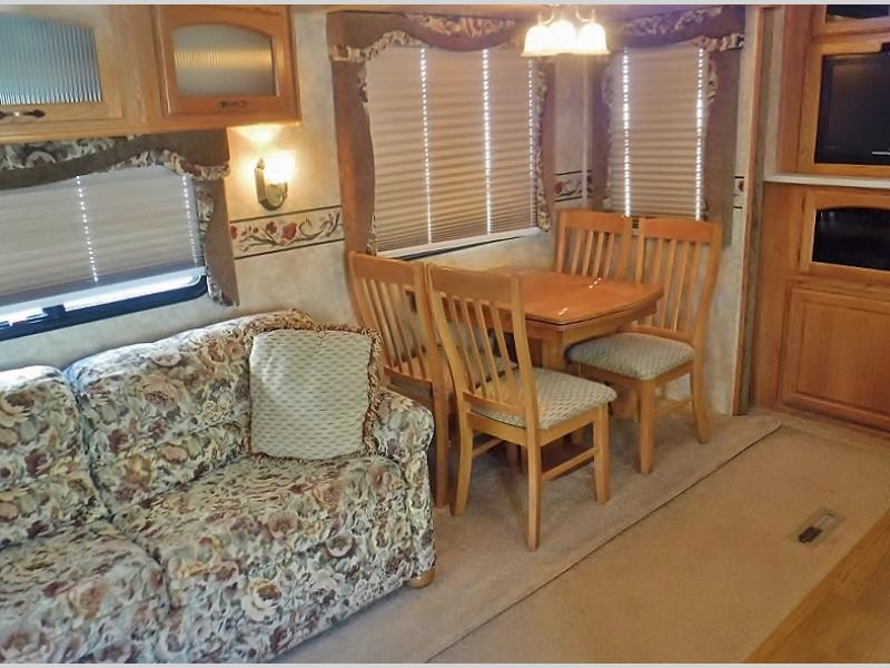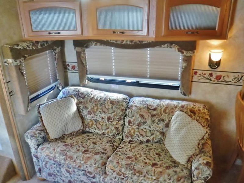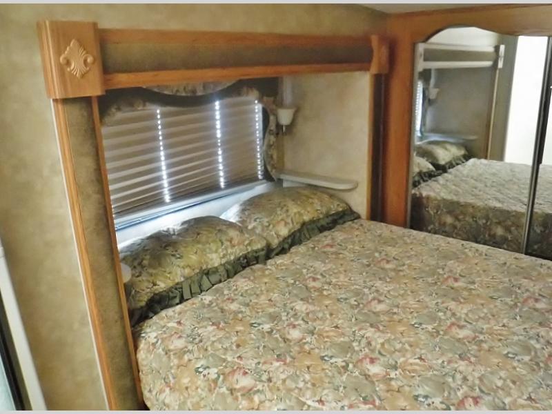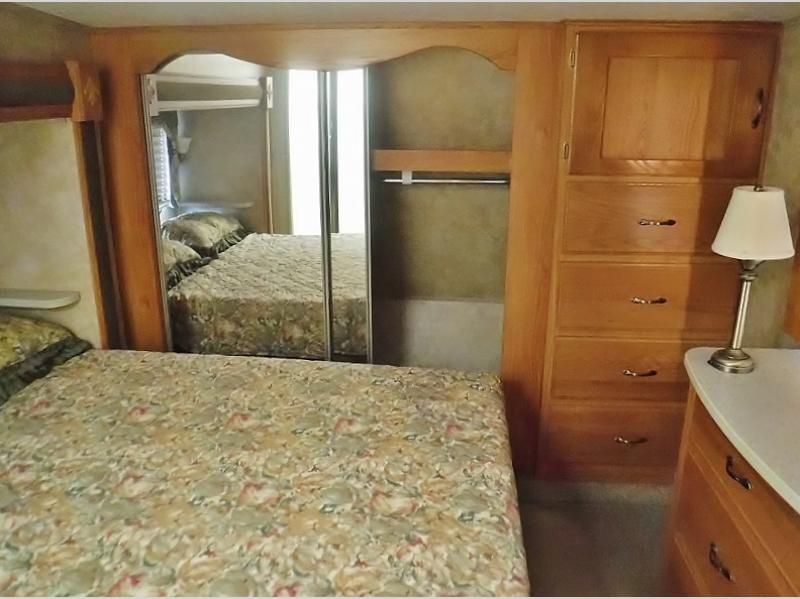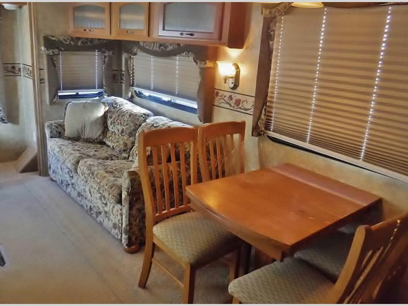 Double Slide, Rear Living Area w/2 Chairs, Hide-A-Bed & Booth Dinette Slideout, or Choice of Free Standing Table & Chairs or Booth w/Extension, Ent. Center w/Hutch, Angle Shower, Front Queen Bed Slideout, Wardrobe, Optional TV, Chest, Lav. Pantry, Refrigerator, 3 Burner Range, Microwave, Double Kitchen Sink, and Much More.