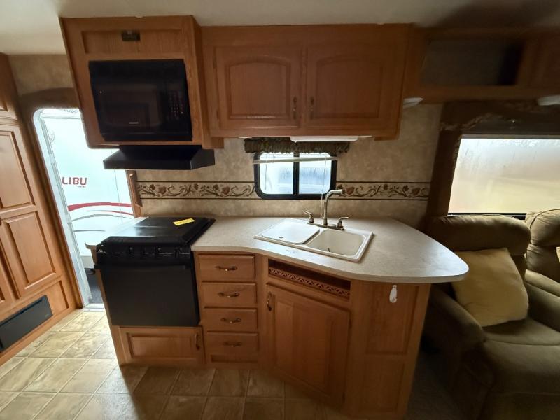 Single Slide, Rear Living Area w/2 Chairs, Corner Ent. Center, Overhead Cabinets, Hide-A-Bed & Booth Dinette w/Opt. Extendable Dinette or Free Standing Table & Chairs Slideout, Refrig., Angle Shower, Lav., Med. Cab., Pantry, 3 Burner Range, Double Kitchen Sink, Ward./TV Cab., Front Queen Bed and Much More.
