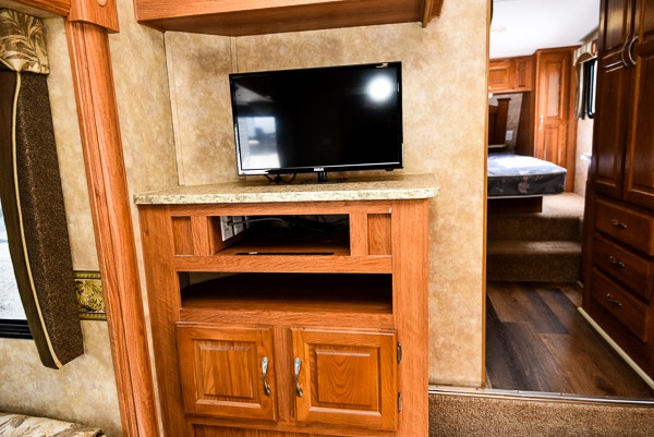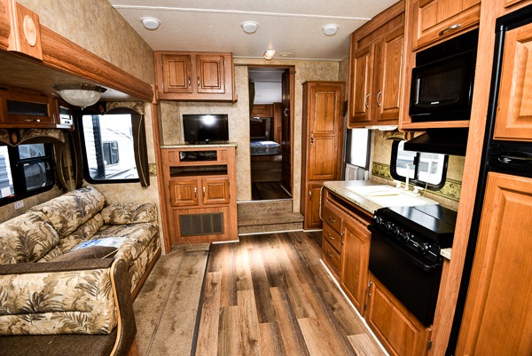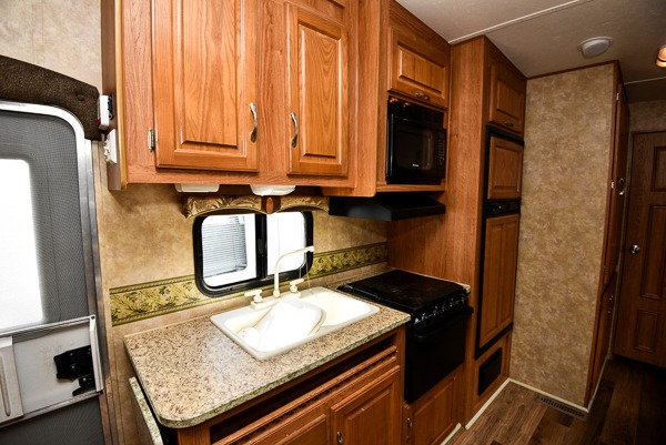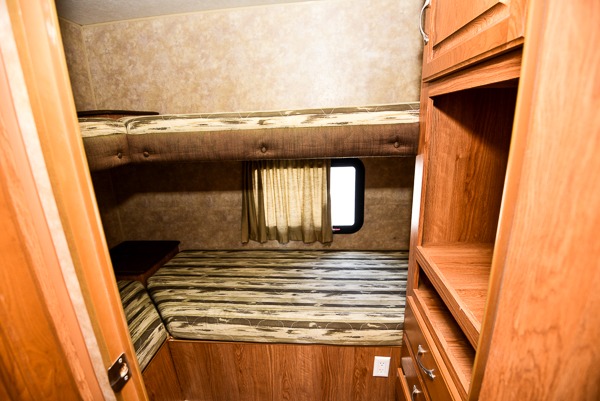 Single Slide Bunkhouse Fifth Wheel, Rear Double Set Bunk Beds w/Storage Box & TV Cabinet, Pantry, Refrigerator, 3 Burner Range w/Microwave, Double Kitchen Sink, Booth Dinette & J-Steel Sofa Slideout or Opt. Extendable Dinette or Free Standing Dinette w/Chairs for Dining, Entertainment Center, Wardrobe, Step Up To Bath, Wardrobe, Lav., Med. Cabinet, Tub/Shower, Step Up To Bedroom w/TV Shelf, Queen Bed w/Wardrobes & Overhead Storage Cabinet, 20' Opt. Awning, Pass-Thru Storage and More.