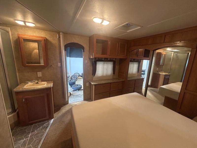Double Slide, Rear Bedroom, Slide Out King Bed, Wardrobe, Chest, TV Overhead Cabinet, Bathroom, Toilet Room, Corner Shower, Lav., Front Kitchen, Double Kitchen Sink, 3 Burner Range, Microwave, Refrigerator, Chair, Slide Out J-Steel Sofa/Booth Dinette, and More.