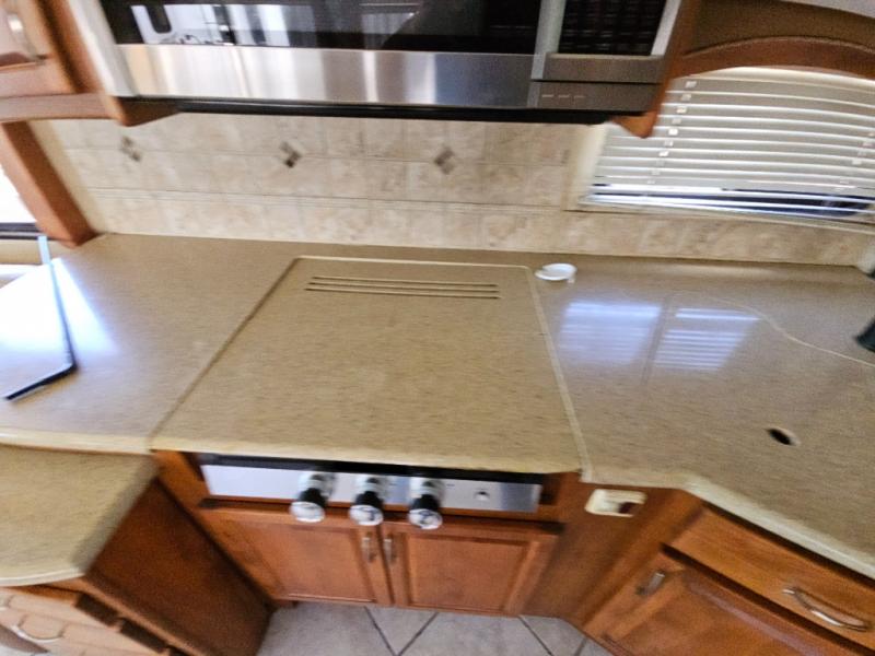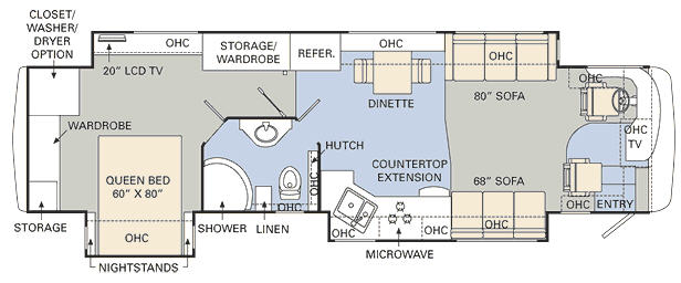 Triple Slide w/Full Wall Slideout Driver Side, Rear Queen Bed Slideout w/Nightstands, Wardrobe w/Closet Washer/Dryer Opt., Shower, Linen Cabinet, Lav., Hutch, Double Kitchen Sink/3 Burner Range/Counter Extension & Sofa Slideout, TV & Overhead Cabinet Above Cab Area, 80" Sofa/Dinette w/Chairs/Refrigerator/Storage Wardrobe/20"LCD TV Wall Slide and Much More.