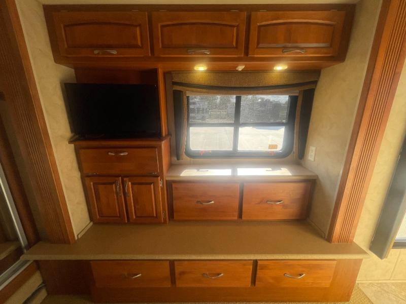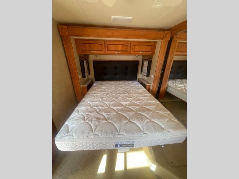 Quad Slide, Rear Wardrobe w/Storage, Queen Bed Slideout w/Nightstands, 20" LCD TV & Overhead Cabinet Slideout, Hall Cabinet, 80" Sofa & Dinette w/Chairs Slideout, Storage Above Cab Area, Refrigerator/3 Burner Range w/Microwave/Double Kitchen Sink & 60" Sofa Slideout, 37" LCD TV Entertainment Center, Side Aisle Bath w/Lav., Tub/Shower, Closet Washer/Dryer Opt. & Much More.