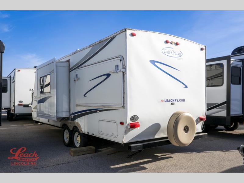 Trail-Cruiser Travel Trailer w/Rear Queen Bed Slide, 72" Sofa, Booth Dinette, Low Pantry, Refrigerator, Range, Tub/Shower, Vanity w/Sink & Toilet, Front Bunk w/Storage Below, Low Wardrobe, and More.