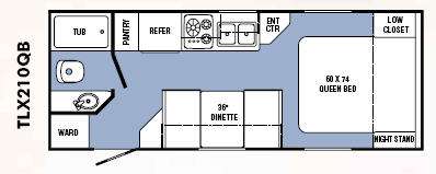 Travel Trailer w/Rear Corner Bath, Lav., Tub/Shower, Toilet, Wardrobe, Refrigerator, 3 Burner Range, Double Kitchen Sink, Ent. Center, Booth Dinette w/Overhead Cabinets, Front Queen Bed w/Low Closet, Nightstand and More.
