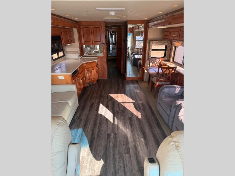 Built on the reliable Roadmaster chassis and powered by a dependable diesel engine, the 38DPQ offers smooth acceleration, confident towing capability, and excellent stability on long trips. The rear-engine diesel platform provides a quieter ride up front and improved weight distribution for enhanced driving comfort.