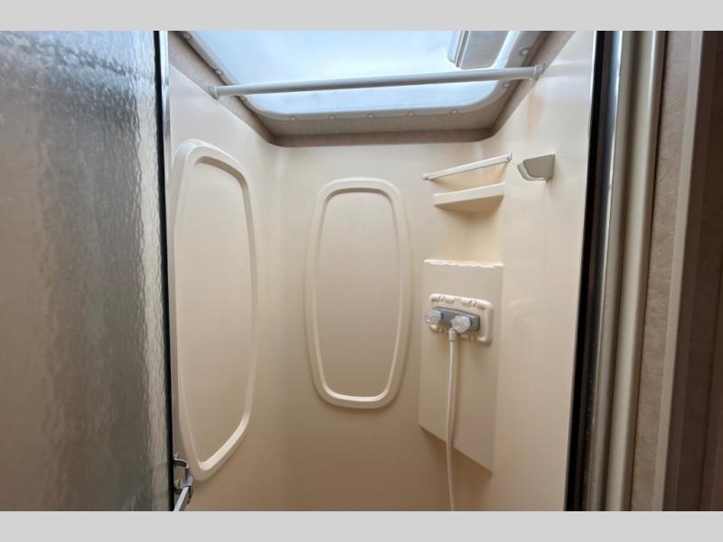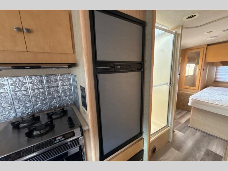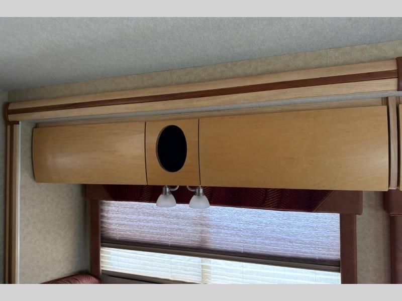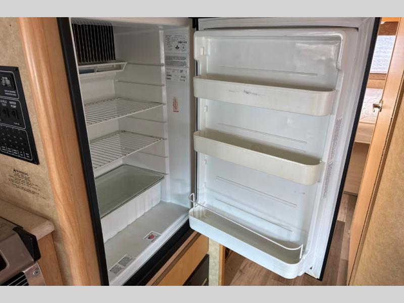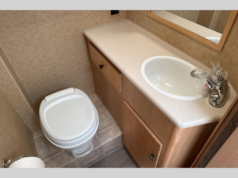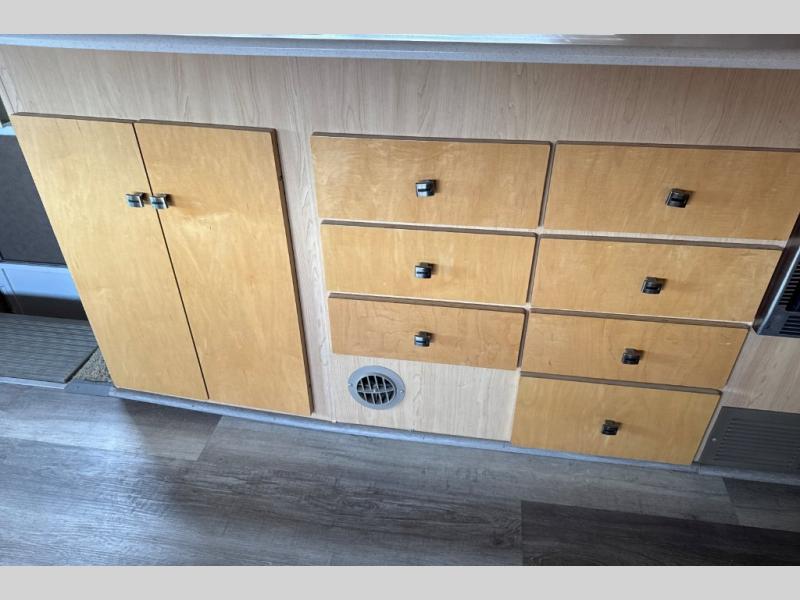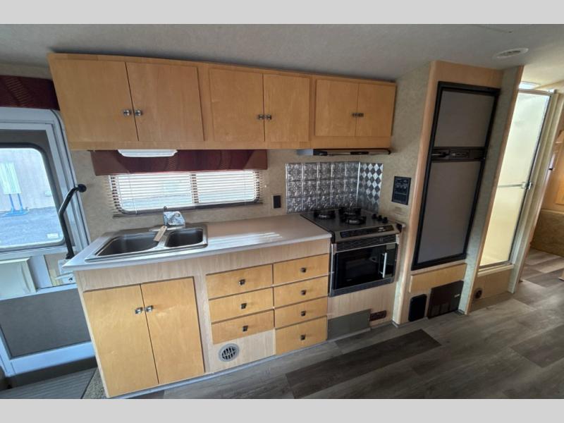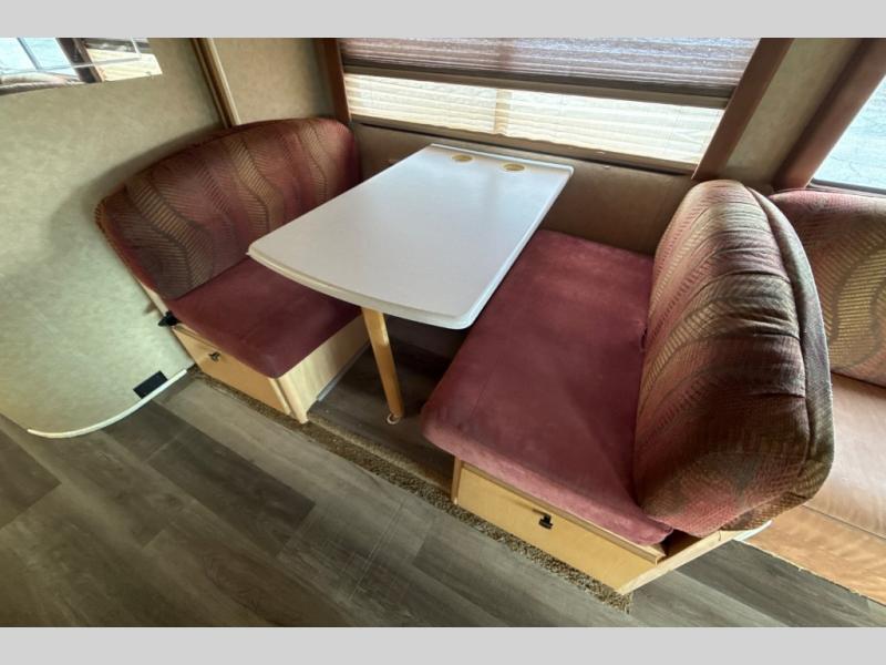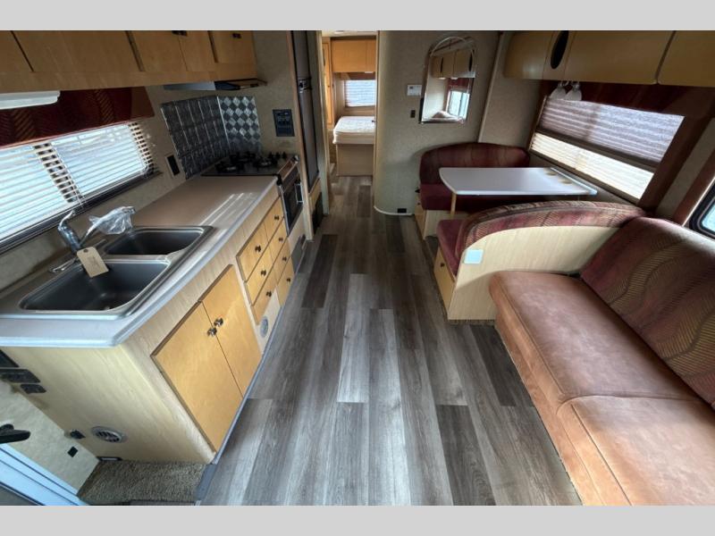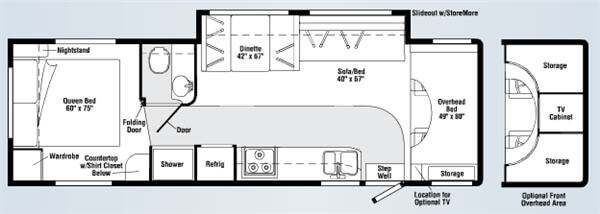 Single Slide. Rear Queen Bed w/Nightstand, Wardrobe & Countertop w/Shirt Closet Below, Lav., Shower, Refrigerator, 3 Burner Range, Double Kitchen Sink, Booth Dinette/Sofa Bed Slideout, Overhead Bed, Opt. Overhead Storage & TV Cabinet, Choice of Chassis, and Much More!