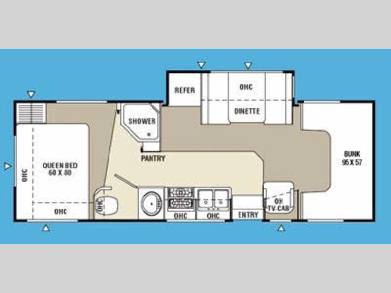 Single Slide Freelander Motor Home w/Rear Queen Bed w/Overhead Cabinets, Wardrobe, Angle Shower, Private Toilet Area w/Sink, Pantry, Refrigerator & Booth Dinette Slideout, 3 Burner Range, Double Kitchen Sink, Overhead TV Cabinet, Bunk Above Cab Area, Available Chevy/Ford Gas Engine or Optional 6.0L Ford Diesel Engine and Much More. Ford Gas Specs. Shown.