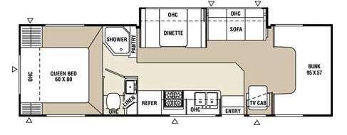 Single Slide Class C Motor Home w/Rear Queen Bed w/Overhead Cabinets, Wardrobes, Angle Shower, Private Toilet Area w/Lav., Linen Cabinet, Refrigerator, 3 Burner Range, Double Kitchen Sink, Lounge Chair, Overhead TV Cabinet, Booth Dinette & Sofa Slideout, Bunk Over Cab or Opt. Entertainment Center, Exterior Storage & Much More. Ford/Chevy Gas Engine Available or Opt. Ford Diesel. Shown w/Ford Gas Specifications.