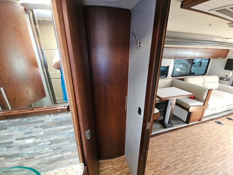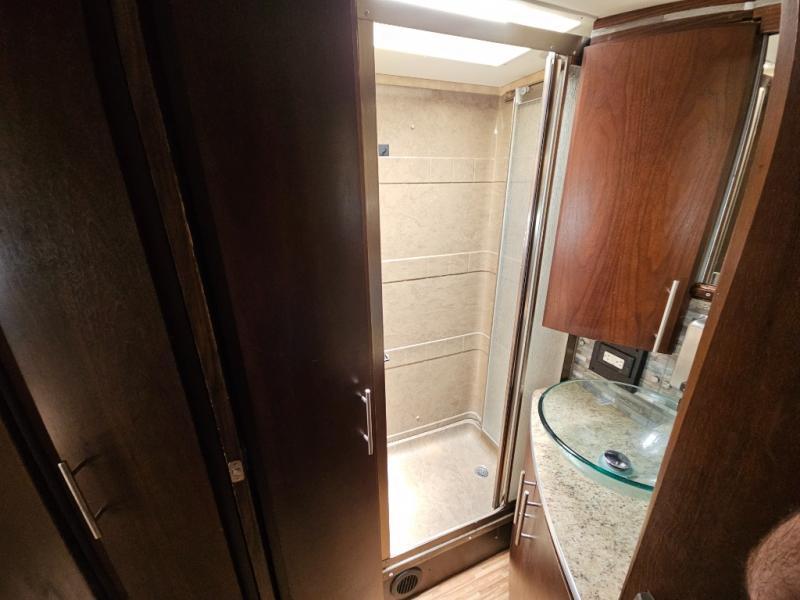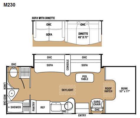 Single Slide Prism Motor Home Class C Diesel w/Rear Bath, Private Toilet Area, Storage, Lavatory, Shower, Pantry, Refrig., 3 Burner Range w/Conv. Oven, Single Bowl Kit. Sink, Euro Chair, Over Cab Bunk, Double Sofa w/Console Slideout, Ped. Table, Sofa w/Dinette Opt. Slideout, Roof Hatch, Skylight, Overhead Cab. Throughout and More.