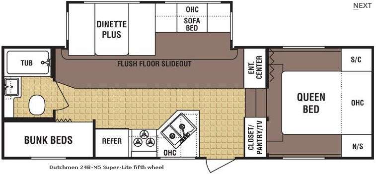 Single Slide Dutchmen Super-Lite Bunkhouse Fifth Wheel w/Rear Corner Bunk Beds, Rear Corner Bath w/Lav., Tub/Shower & Toilet, Dinette Plus & Sofa Bed Slideout, Refrigerator, 3 Burner Range, Double Kitchen Sink, Ent. Center, Closet/Pantry/TV, Front Queen Bed w/Shirt Closet, Nightstand & Much More.