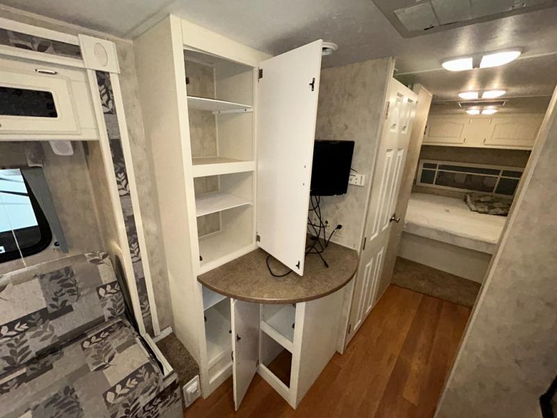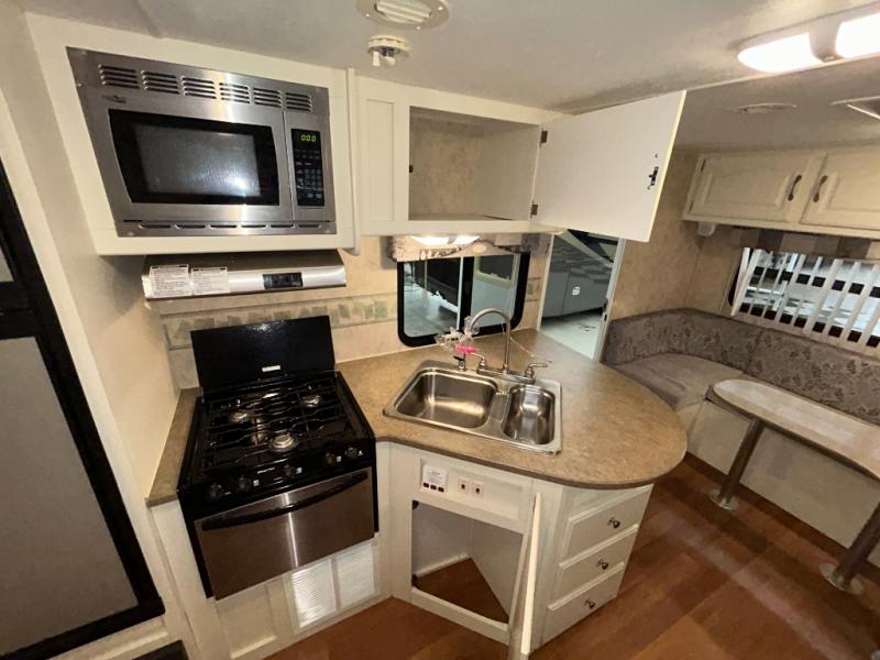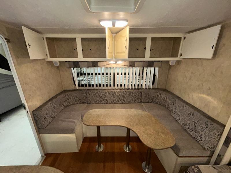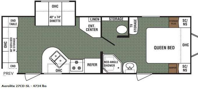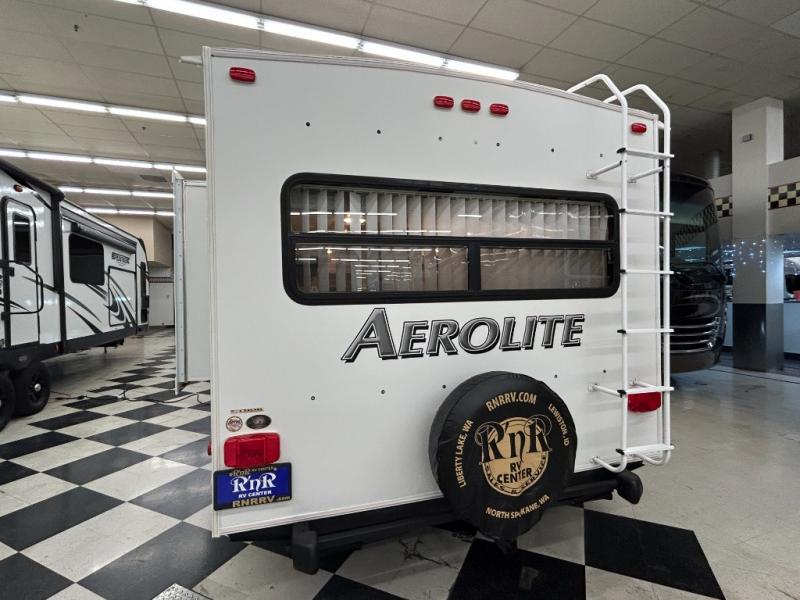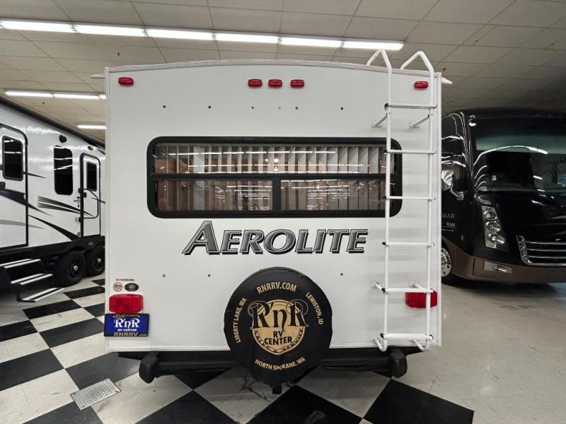 Single Slide Aerolite Travel Trailer w/Rear Living Area w/Sofa Bed & End Tables or Optional Chairs w/End Tables & Overhead Cabinets, Booth Dinette Slide, Ent. Center/Linen Cabinet, Walk-Thru Bath w/Private Toilet Area, TV/Storage, Front Queen Bed w/Shirt Closets Above Nightstands Both Sides of Bed, Private Bedroom Entrance, Lav., Neo-Angle Shower, Refrigerator, 3 Burner Range, Double Kitchen Sink and More.