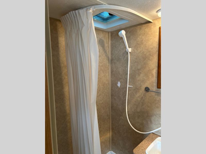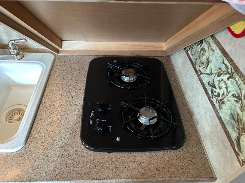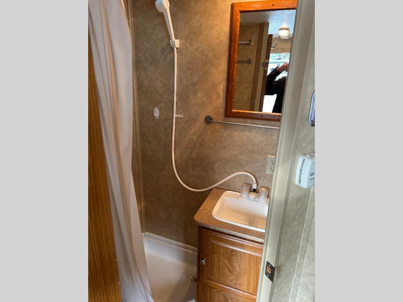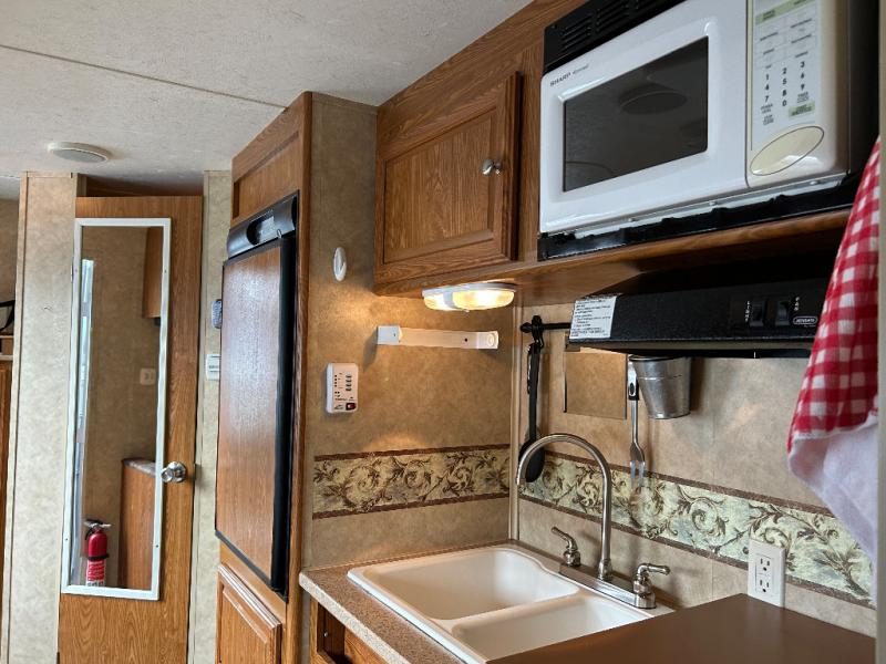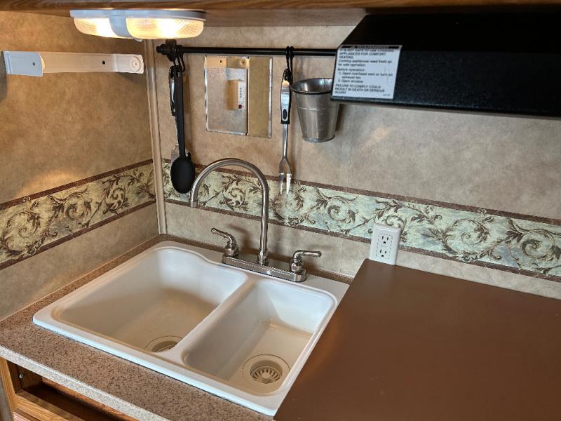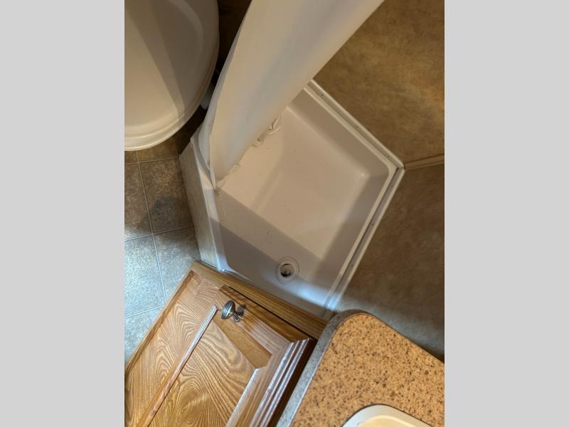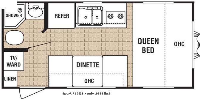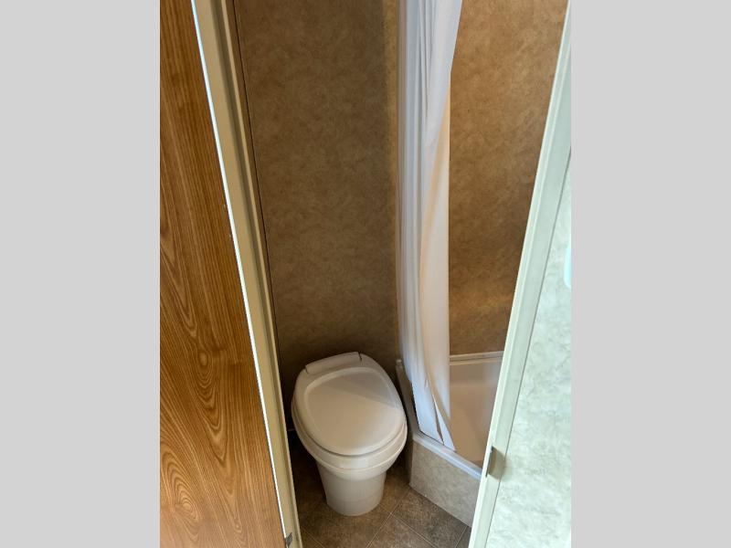 Sport Travel Trailer w/Rear Corner Bath Including Angle Shower, Lav. & Toilet, Linen Cabinet, TV/Wardrobe, Booth Dinette w/Overhead Storage, Front Queen Bed w/Overhead Cabinet, Refrigerator, Double Kitchen Sink, 2 Burner Range and More!