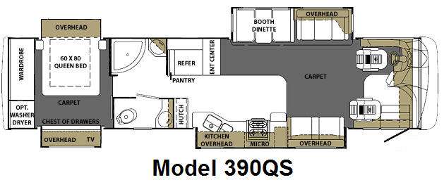 Quad Slide Berkshire Class A, Rear Queen Bed Slide, Ward. w/Mirrored Doors, Opt. Stackable Washer & Dryer, Chest of Drawers & TV Cabinet Slide Out, Angle Shower, Lav., Private Toilet Area w/Lav., Hutch, Pantry, Refrig., Opt. 2 Door Refrig w/o Pantry, Ent. Center, Booth Dinette or Opt. Free Standing Dinette & Sofa Slide Out, Loveseat or Opt. Sofa/3 Burner Range w/Micro. & Dbl. Kit. Sink Slide Out, Overhead Cabinets, Engine & Chassis Choice and Much More. Specs Shown For Freightliner Chassis.