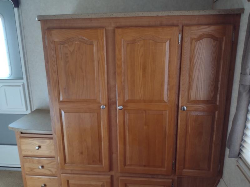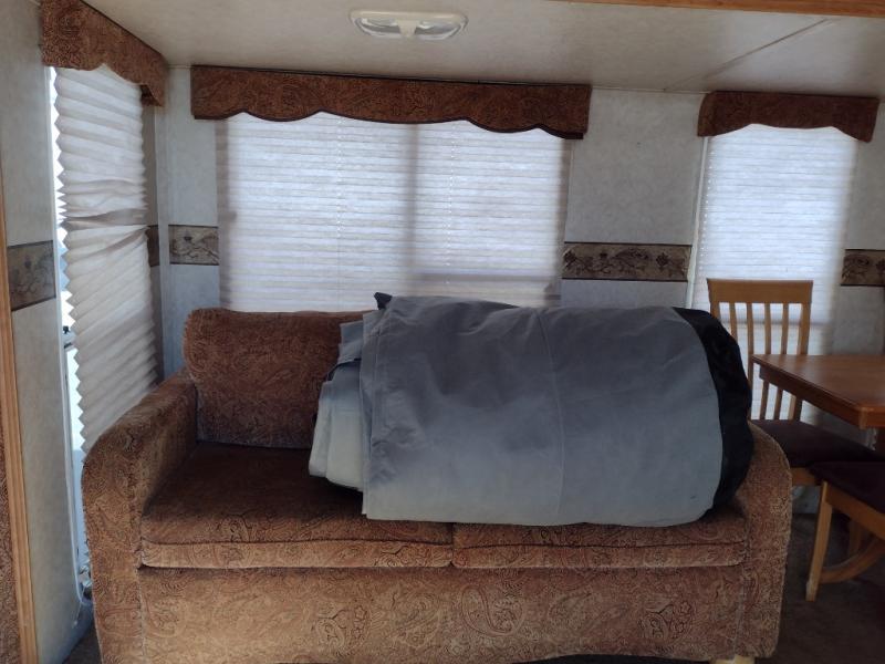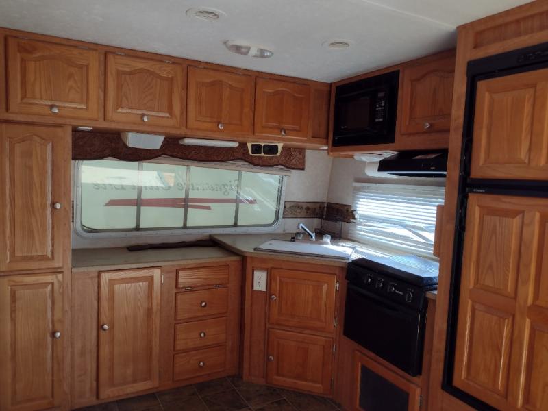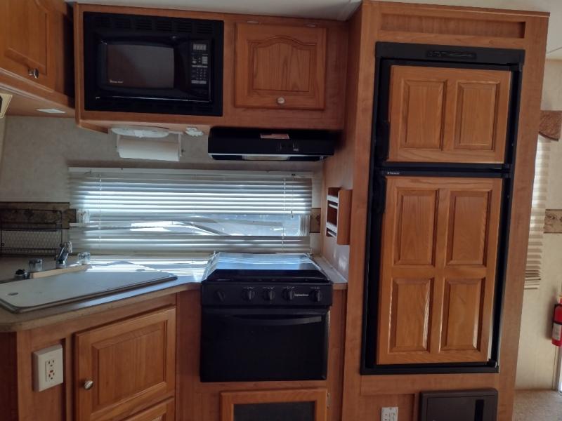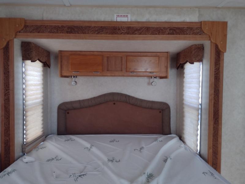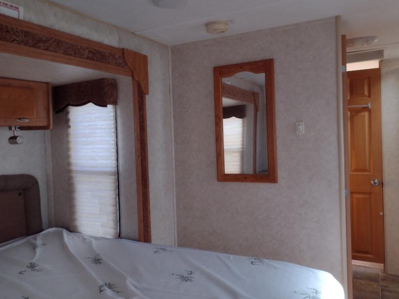 Double Slide Rockwood Signature Ultra Lite w/Rear Queen Bed Slide w/Nightstand & Wardrobe, Private Bedroom Entrance, Vanity, 2nd Wardrobe w/TV Top, Neo-Angle Shower, Wardrobe, Med. Cabinet, Linen Closet, Sofa & Booth Dinette Slideout, Barrel Chair, Front Kitchen w/Refrigerator, Double Sink, 3 Burner Range, Overhead Cabinets, Microwave, Pantry, Shelf and Much More.