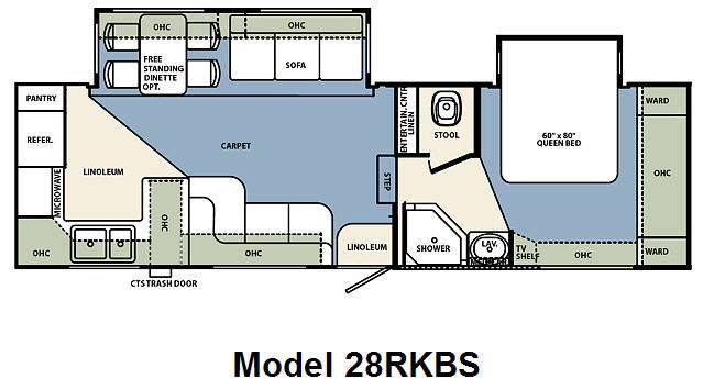 Double Slide Wildcat FW, Rear Kitchen w/Pantry, Refrigerator, Double Kitchen Sink, 3 Burner Range, Microwave, Slide Out Free Standing Dinette Opt. & Sofa, Ent. Center/Linen Cab., L-Shaped Sofa, CTS Trash Door, Step Up Bath/Bedroom, Corner Shower, Lav. w/Med. Cab., Private Toilet Area, Front Queen Bed Slide Out, TV Shelf, Wardrobe, Overhead Cabinets Throughout and More.