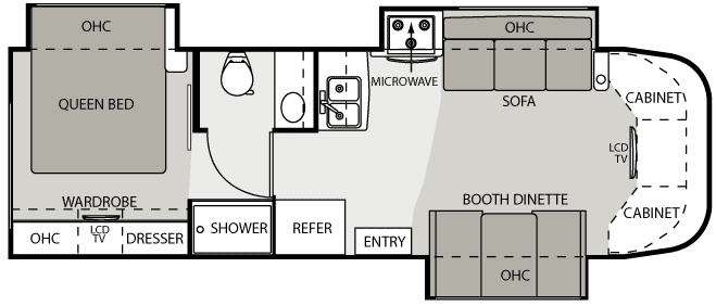 Triple Slide Chateau Citation Class C Coach w/Rear Queen Bed Slide w/Nightstand, Wardrobe/Dresser w/LCD TV & Storage Overhead, Shower, Private Toilet Area w/Vanity & Sink, Double Kitchen Sink, 3 Burner Range w/Microwave & Sofa Slideout, Ent. Center w/32" LCD TV Above Cab Area, Slideout Booth Dinette w/Storage Above, Refrigerator and Much More. Engine & Chassis Choices. Ford Specifications Shown.