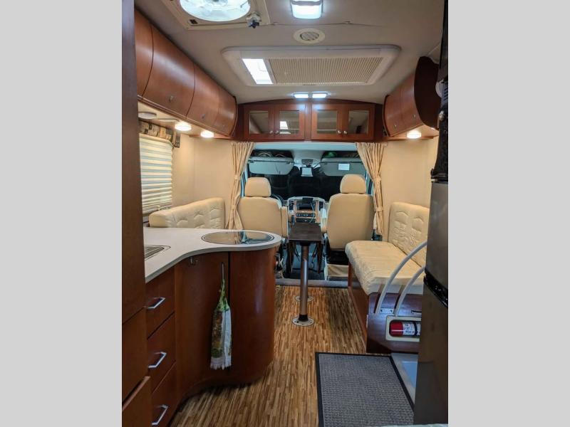 This LTV Serenity has been completely modernized: 400 watts of solar; 400 Amp Hours of lithium battery power; 3,000 watt inverter; battery-to-battery charger and new 12v/120v compressor refrigerator, new rooftop air conditioner plus an Onan LP generator makes this perfect for comfortable boondocking or campgrounds. Corner bed 24-footer with dual couches up front that can be configured into another bed. Pre-DEF 6-cyl Sprinter turbo-diesel runs strong and delivers 16-19 mpg. Low-profile fiberglass shell and cherry cabinetry. Yes it's an older model (2009) and yes it's seen the country (188,454k miles) but it looks and runs great and I have all maintenance records and documentation since it was built. New windshield. New headlights. Loads of storage. A lot of value and a quality RV.