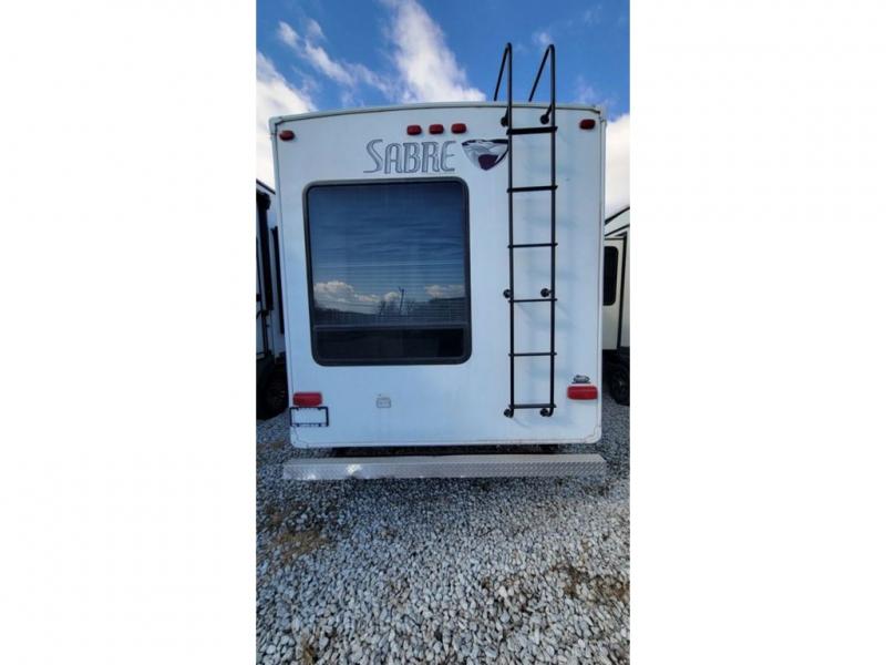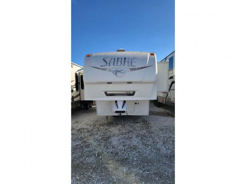 Double Slide Sabre Fifth Wheel, Rear Living Area w/Ent. Center, 2 Lounge Chairs, Sofa & Booth Dinette Slideout, Overhead Cabinets, Double Kitchen Sink, 3 Burner Range, Pantry, Refrig., 2nd Pantry, Side Aisle Bath w/Angle Shower, Lav., Cabinet, Front Queen Bed Slideout w/Nightstands, Dresser, Shelves, Wardrobe & Much More.