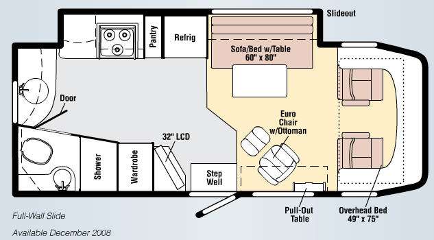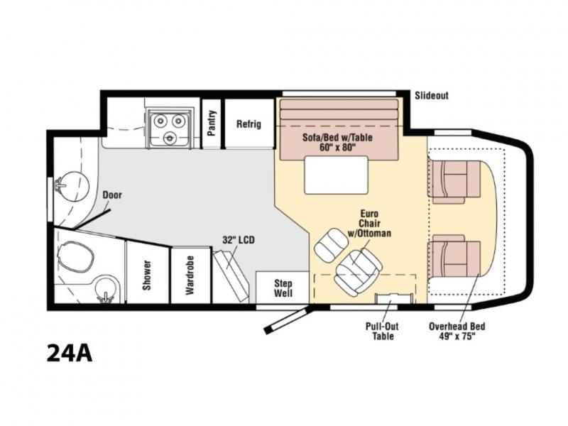 Winnebago View Class C Diesel Coach w/Full Slide Driver's Side Including 3 Burner Range/Pantry, Refrigerator/Sofa Bed w/Table & Overhead Storage Cabinets, Cabover Bed, Pull-Out Table, Euro Chair w/Ottoman, 32" LCD TV, Wardrobe, Rear Bath w/Shower, Vanity w/Sink & Toilet, 2nd Large Vanity w/Sink and More.