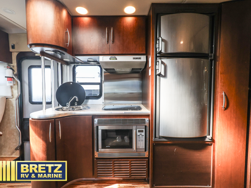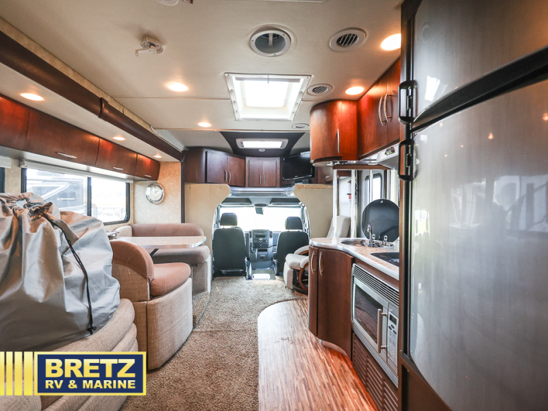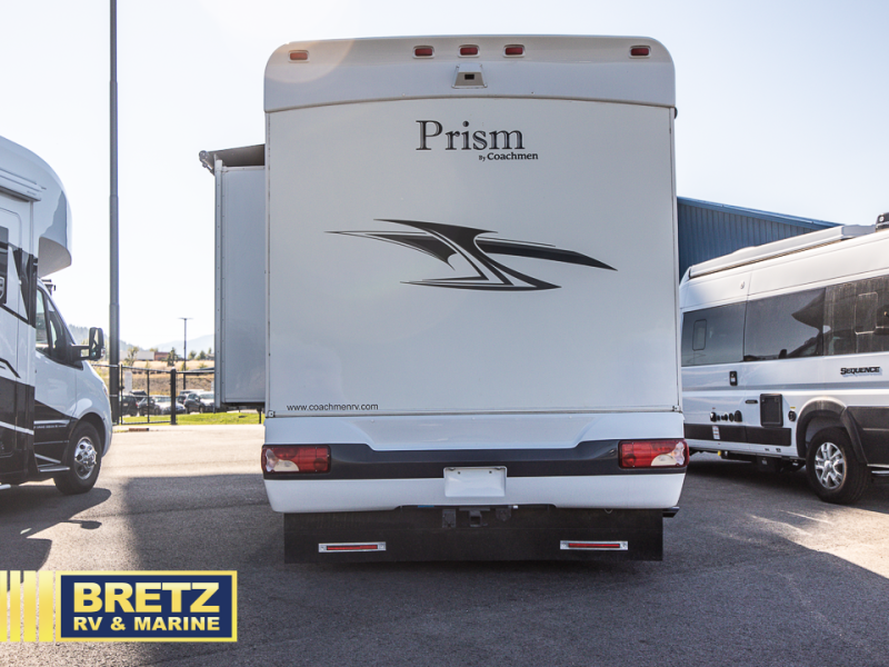 Single Slide Prism Motor Home Class C Diesel w/Rear Bath, Private Toilet Area, Storage, Lavatory, Shower, Linen & Medicine Cabinets, Pantry, Refrig., Convection Microwave, Single Bowl Kitchen Sink, Euro Chair, Over Cab Bunk, Double Sofa w/Console Between Slideout, Pedestal Table, Sofa w/Booth Dinette Opt. Slideout, Roof Hatch, Skylight, Overhead Cab. Throughout and More.