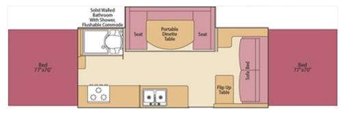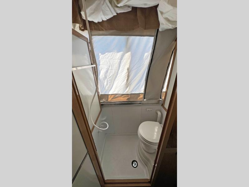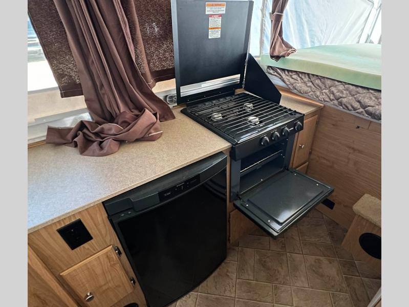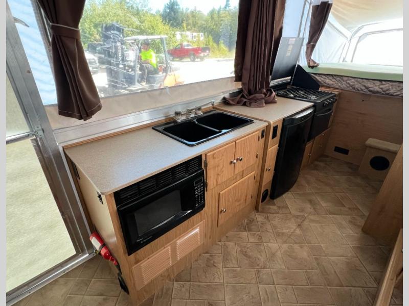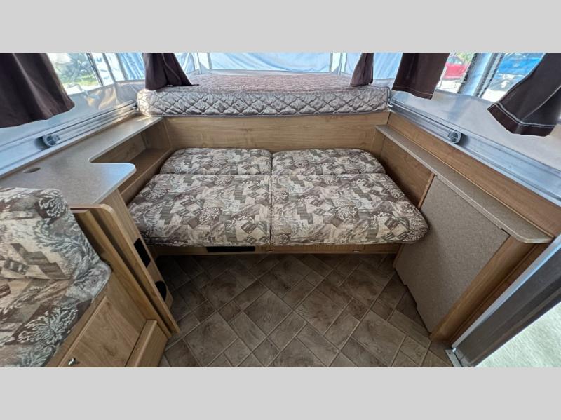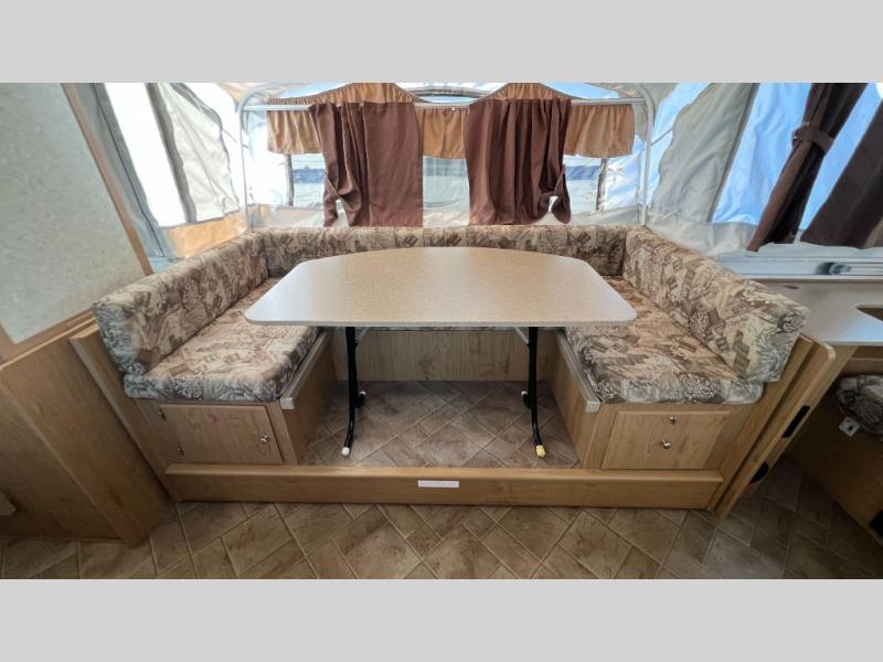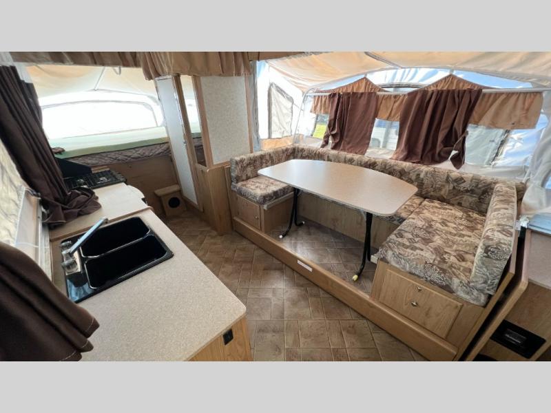 The Highlander Series Folding Pop-Up Camper by Coleman, Rear & Front Tent End Beds, 3 Burner Range, Dbl. Kitchen Sink, Solid Walled Bath w/Shower, Flushable Commode, U-Shaped Dinette w/Portable Table, Flip Up Table, Sofa Bed and More.