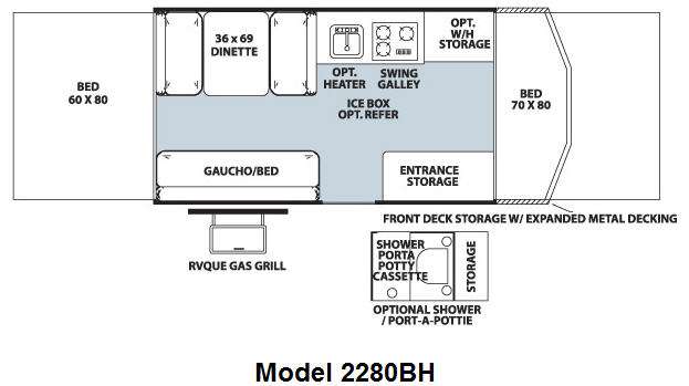 Rockwood Freedom/LTD Folding Camper w/Rear Queen Tent Bed & Front King Tent End Bed, Gaucho/Bed, Booth Dinette, Swing Galley w/3 Burner Cooktop, Sink, Opt. Water Heater, Storage, Entrance Storage, Shower/Porta Potty Cassette w/Storage or Opt. Shower/Port-A-Pottie, RVQue Gas Grill, 24 x 84 Front Deck Storage w/Expanded Metal Decking and Much More.