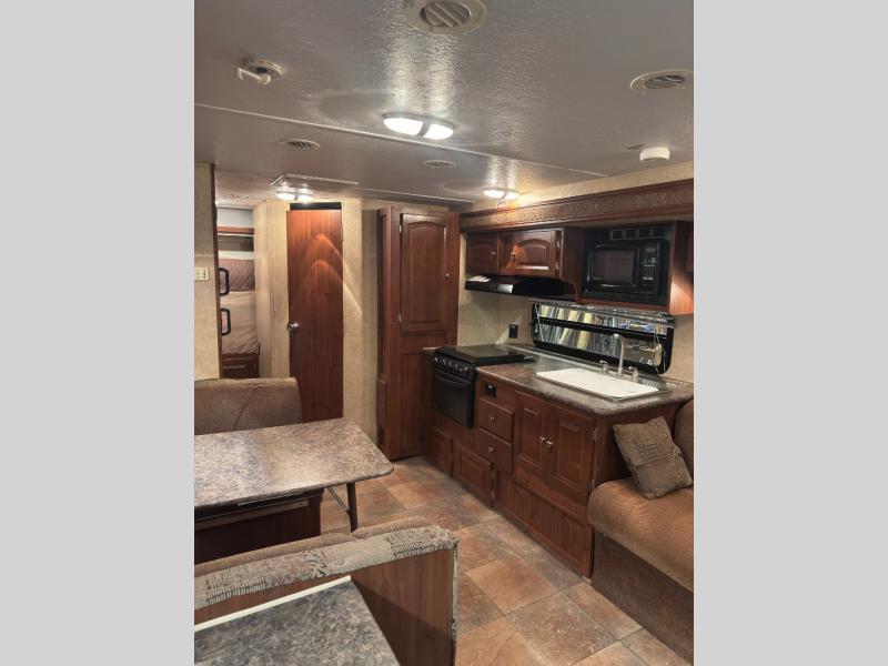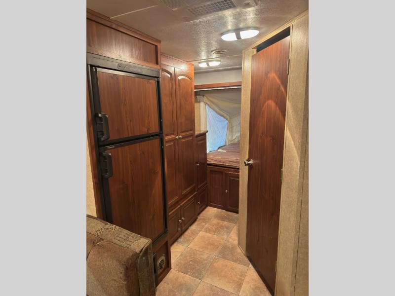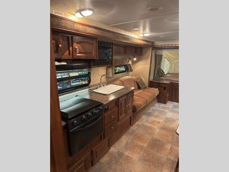 Single Slide Expandable TT by Forest River, Front & Rear Queen Tent End Beds, Angle Shower, Med. Cabinet, Lav., Toilet, Wardrobe, Pantry, Refrigerator, 3 Burner Range/Double Kitchen Sink/Sofa w/Overhead Cab. Slide Out, Booth Dinette w/Overhead Cab. & Bar, Ent. Center, Nightstand, Overhead Cabinets, 17' Awning and More.