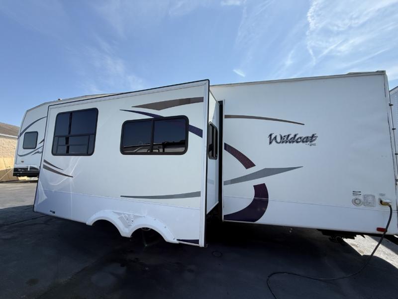 Double Slide Wildcat FW by Forest River, Rear Queen Bed Slide Out, Ent. Center/Glass Wardrobe, Drawers, Pantry, Opt. Half Bath, Baggage Door, Ent. Center, Refrigerator, Double Kitchen Sink, Microwave, 3 Burner Range, Overhead Cabinets, Sofa & Free Standing Dinette w/Chairs Slide Out, Step Up Bath/Bedroom, Angle Shower, Lav., Private Toilet Area, Front Bunkhouse, Sofa w/Flip Up Bunk, Bunk Beds Upper & Lower, Wardrobe/Ent. Center, Drawers and Much More.