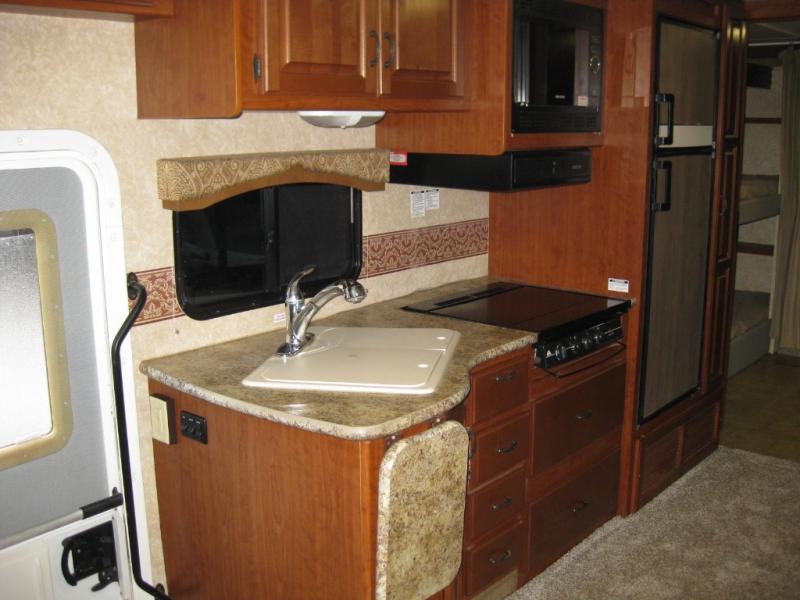 Arriving Soon!Triple Slide Hurricane Class A by Four Winds w/Bunks, Rear Queen Bed Slide w/Nightstands, Wardrobe/LCD TV/Bunk Beds Slide w/Privacy Curtain, Opt. LCD TV Across from Bunks, 32" LCD TV in Living Area, Angle Shower, Toilet & Vanity w/Sink, Pantry, Refrigerator, 3 Burner Range w/Microwave Above, Dbl. Kitchen Sink w/Counter Extension, Lounge Chair Behind Passenger Seat, 32" LCD TV Opt. Above Cab Area, Booth Dinette & Hide-A-Bed Sofa Slide and More!