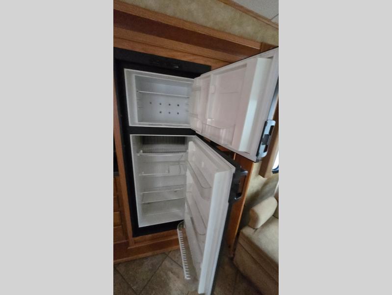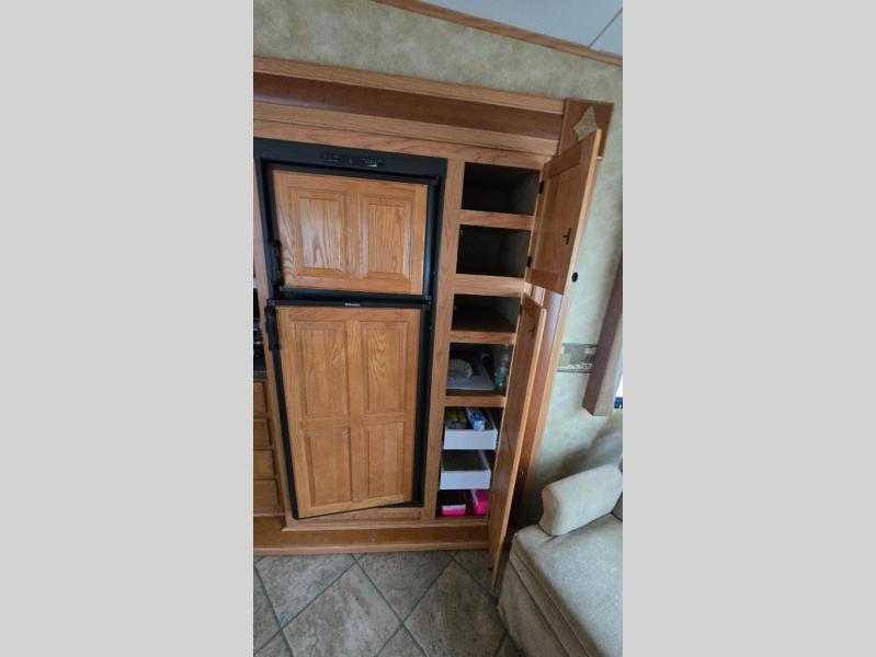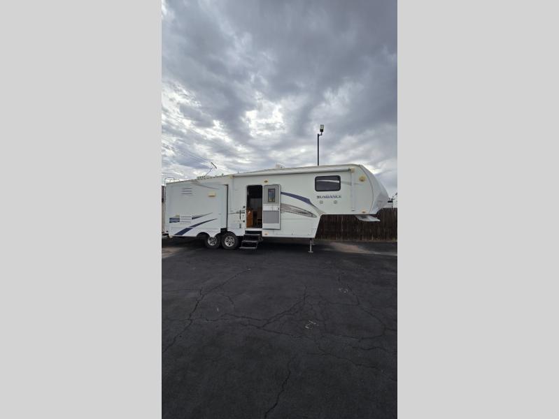 Bobby Combs RV Center Mesa has a new arrival This Triple Slide Sundance FW w/Rear Living Area Including 1 Rocker w/2nd Optional & Overhead Cabinets, Sofa w/Opt. Air Mattress & Booth Dinette Slide w/Opt. Free Standing Dinette, Ent. Center w/Overhead Storage, L-Shaped Counter w/Double Sink, 3 Burner Range/Refrigerator & Pantry Slide, Closet, Private Toilet Area, Angle Shower, Sink, Laundry, Linen Closet, Dresser w/Drawers, Wardrobe, Queen Bed Slide and Much More!