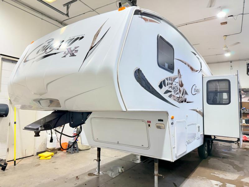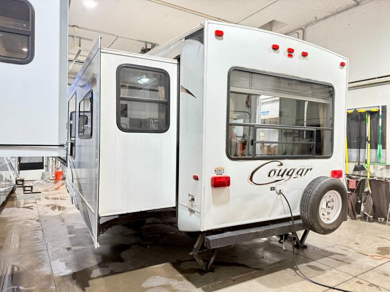 Being Sold "AS IS" - Call For DetailsCougar X-Lite Fifth Wheel w/Rear Living Area Including 2 Lounge Chairs, Overhead Cabinets, Sofa & Booth Dinette Slide, Dbl. Kitchen Sink, Flip-Up Counter, 3 Burner Range, Refrigerator, Pantry, LCD TV, Linen Cabinet, Bath w/Neo-Angle Shower, Toilet & Sink, Front Queen Bed w/Wardrobes Both Sides of Bed, Wardrobe Slide, Overhead Cabinet and More!