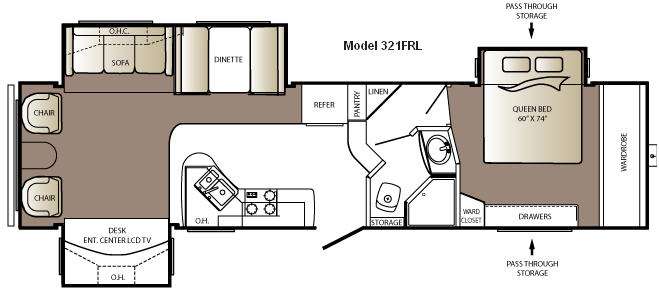 Triple Slide Sydney Outback Fifth Wheel by Keystone RV w/Rear Living Area Including 2 Lounge Chairs, Sofa & Booth Dinette Slide, Desk/Ent. Center w/LCD TV Slide w/Overhead Storage, Dbl. Kitchen Sink, 3 Burner Range, Refrigerator, Step Up to Side Aisle Bath w/Angle Shower, Toilet & Sink, Pantry, Linen Cabinet, Wardrobe/Closet, Drawers, Queen Bed Slide, Full Front Wardrobe, Pass-Thru Storage and More!