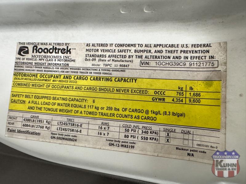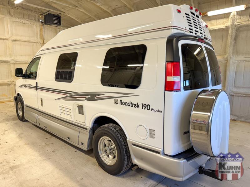 2010 Roadtrek 190 Popular - 20.5' bumper to bumper - Sleeps 3 - Chevy Express 3500 van chassis - Gas 6.0L V8 engine - Tow package - Onan 2800 gasoline generator with 96 hours - 6 seatbelts - Flat screen TV - Microwave oven - 3-way Dometic Fridge/Freezer - Coolcat rooftop A/C and heat pump - Propane furnace - Wet bath - 2 NEW Trojan AGM coach batteries - Power windows, locks, mirrors, tilt, and cruise - This Roadtrek is ready for new adventures!