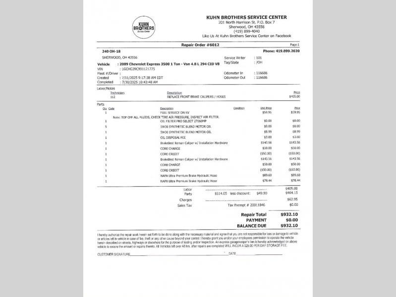 | Chassis | Chevy Express 3500 |