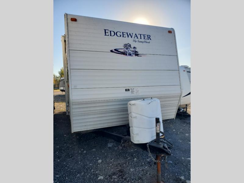 Stored off-site, please book an appointment for viewingEdgewater Travel Trailer by SunnyBrook w/Rear Corner Bath Including Tub/Shower, Toilet, Sink w/Med. Cabinet & Linen Closet, Rear Corner Double Bed w/Bunk Above & Shirt Closet, Refrigerator, 3 Burner Range, Dbl. Kitchen Sink, Overhead Cabinets, Booth Dinette w/Overhead Cabinets, Sofa, Front Queen Island Bed w/Nightstands & Shirt Wardrobes, Ext. Storage Below Bunks and Much More!