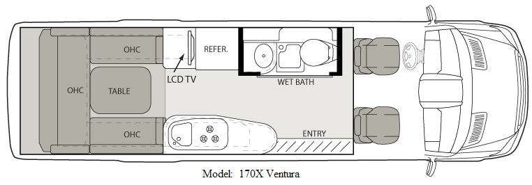 Class B Ventura Motorhome by Four Winds w/Rear U-Shaped Dinette/Lounge w/Pedestal Table w/Stone Edging Converts to King Bed, Overhead Cabinets, 19" LCD TV, Refrigerator, Wet Bath w/Shower, Toilet & Sink, Skylight Above Shower, 3 Burner Range w/Microwave, Kitchen Sink and Much More!