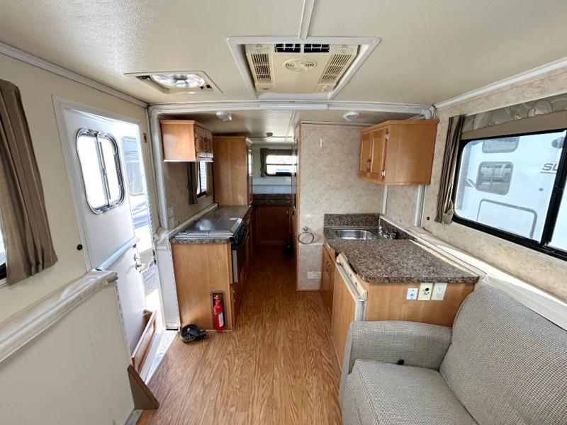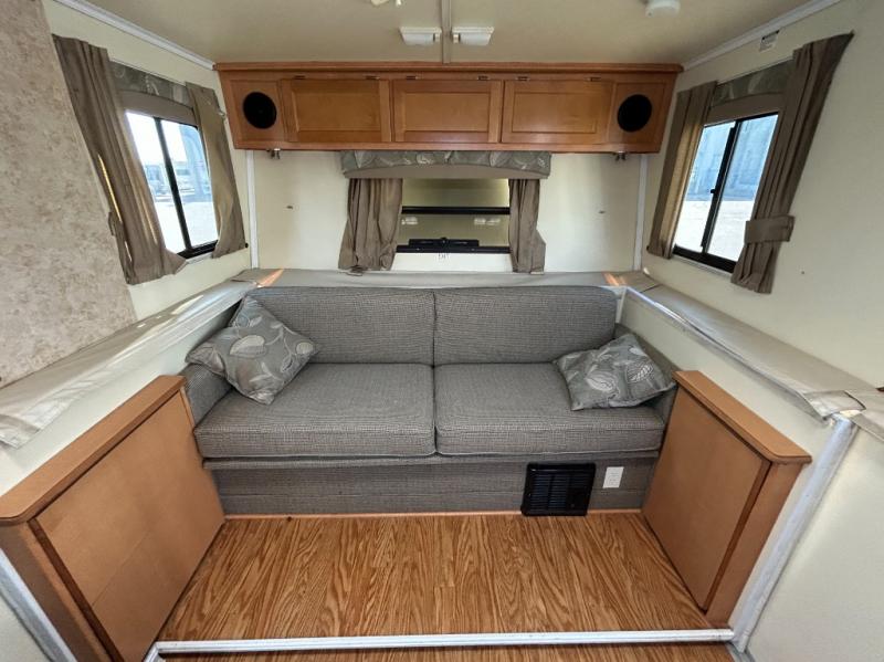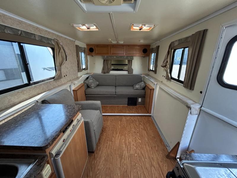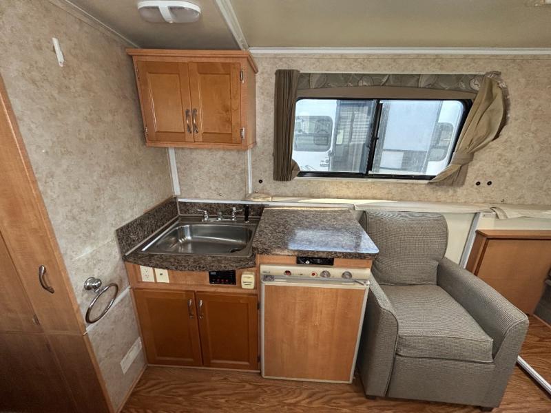 TravelManor TT w/Rear Queen Bed, Storage, Tub/Shower, Lav., Wardrobe, 3 Burner Range, Kitchen Sink, Refrigerator, Living Area w/Lounge Chair, Front Couch/Bed 41 x 71, Shelf, End Tables & More.
